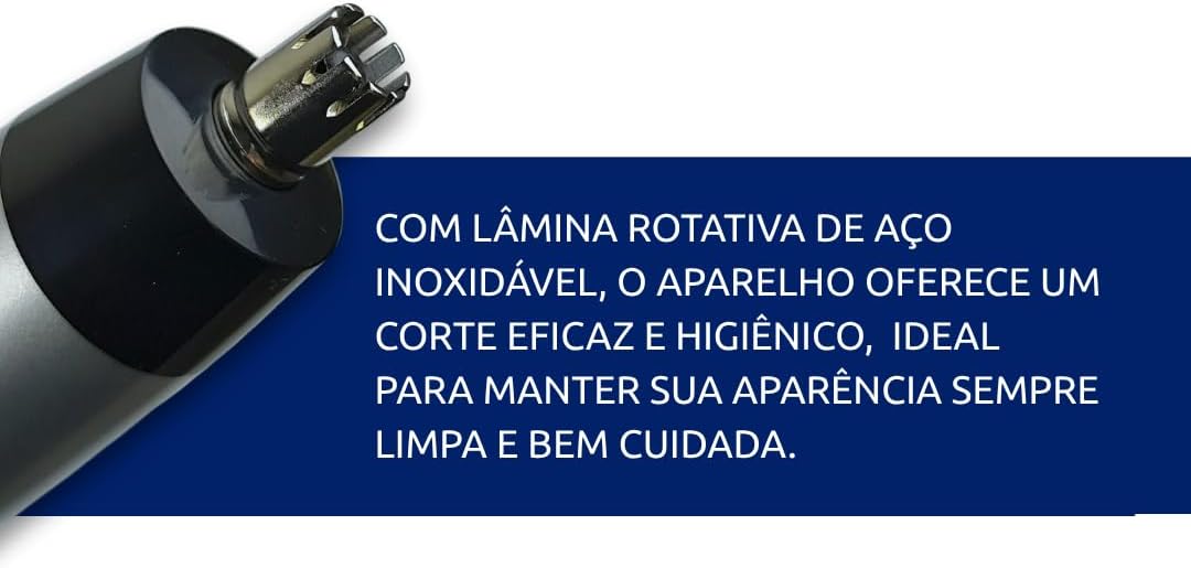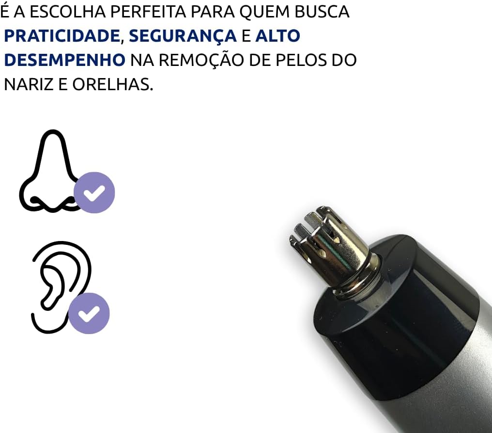 - Aparador nasal compacto para remoção segura e eficaz dos pelos do nariz e orelhas