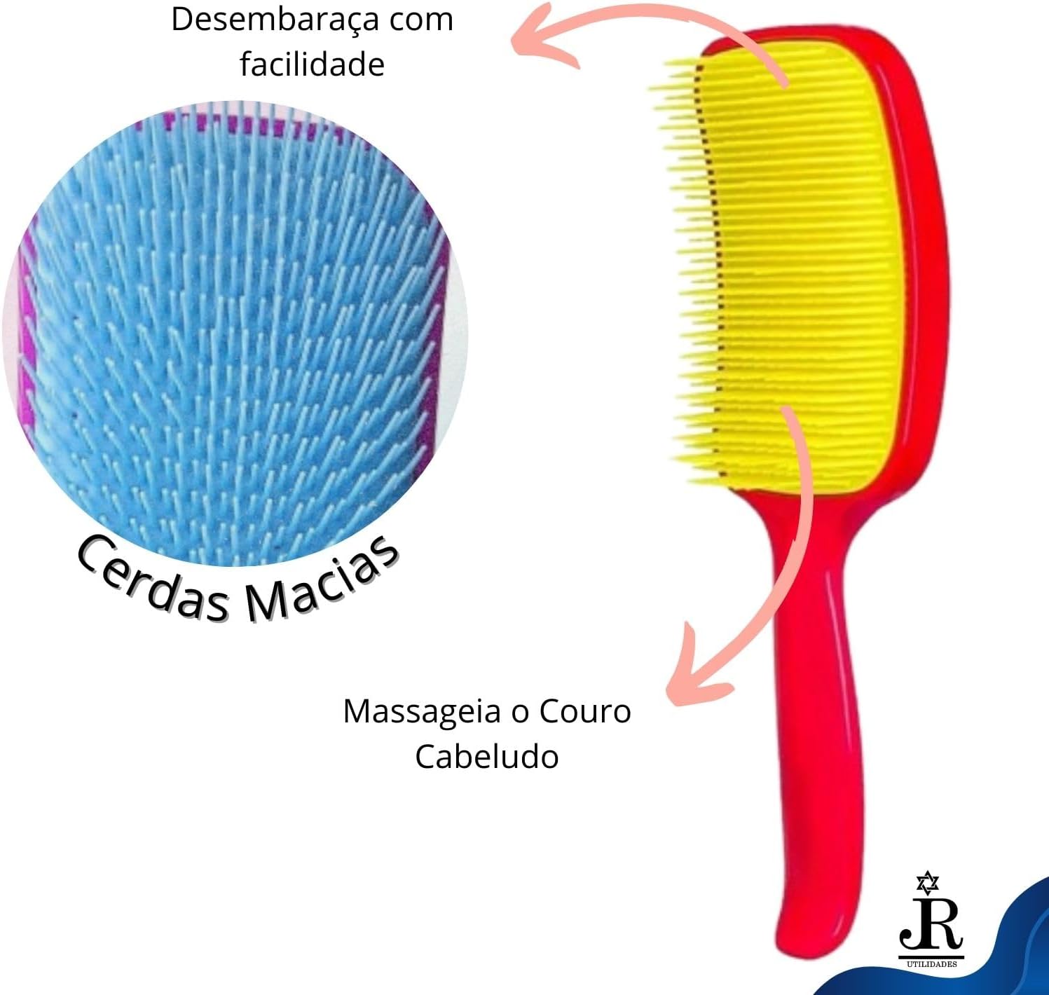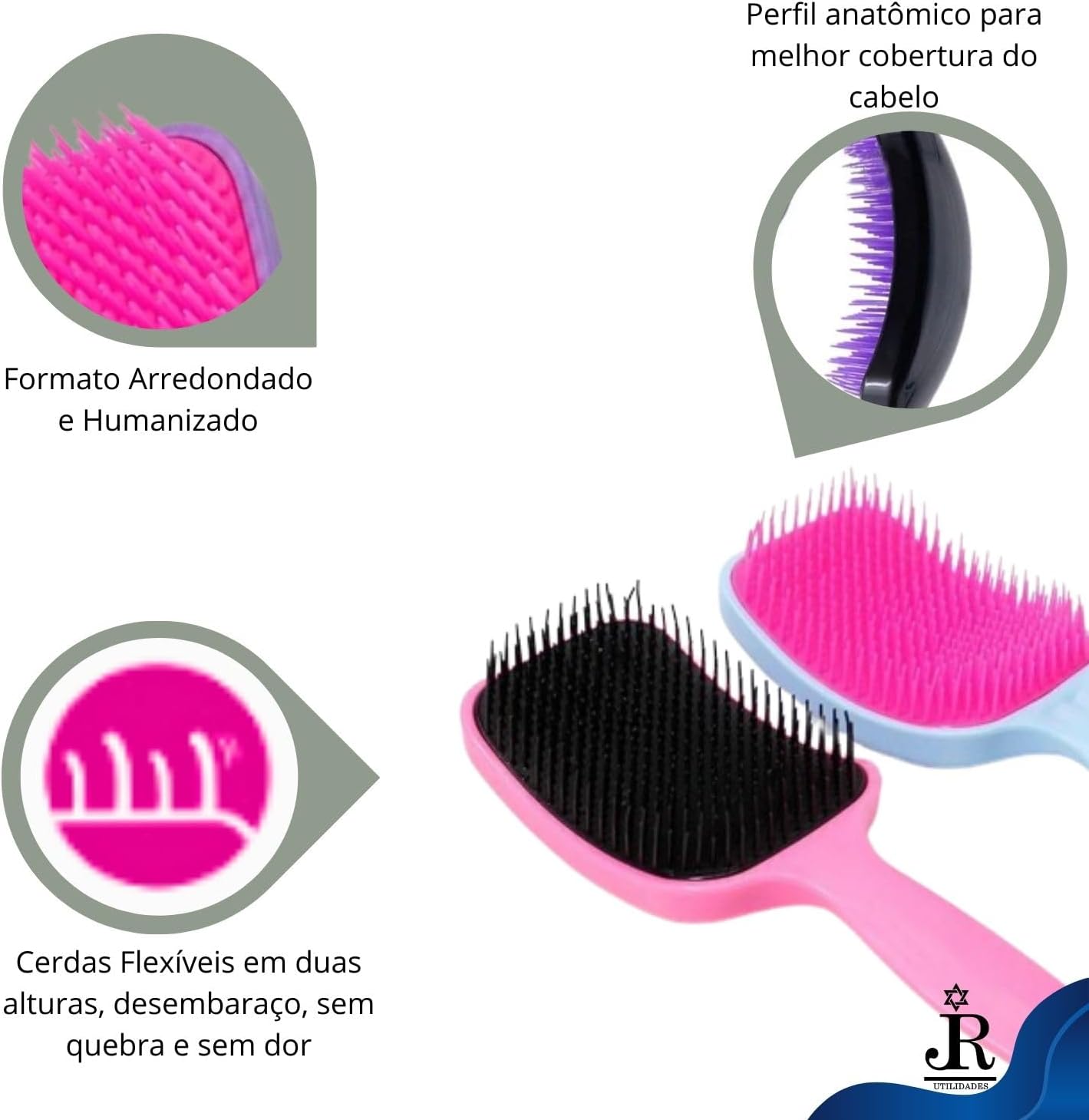 💆♀️ Desembaraço sem Dor – Cerdas firmes e flexíveis com pontas arredondadas protegem o couro cabeludo e reduzem a quebra dos fios.