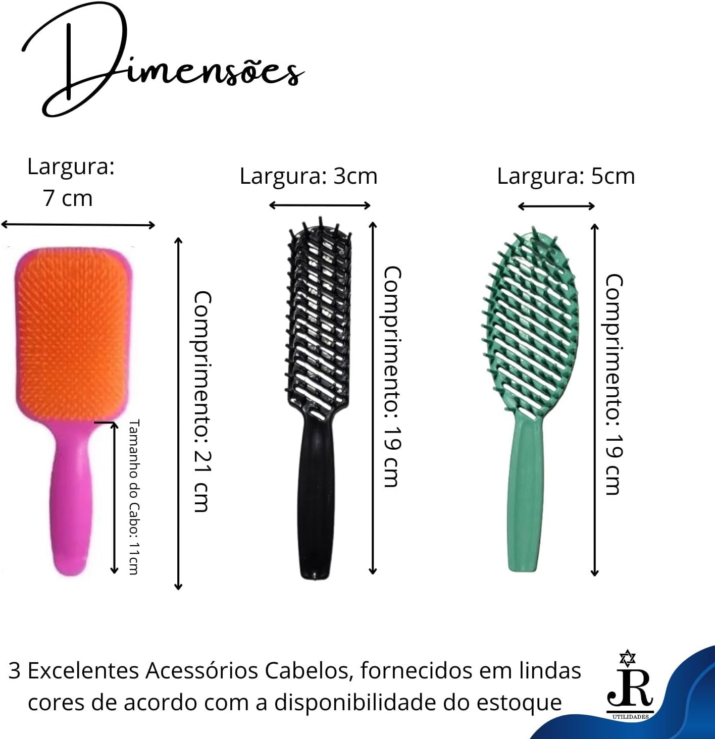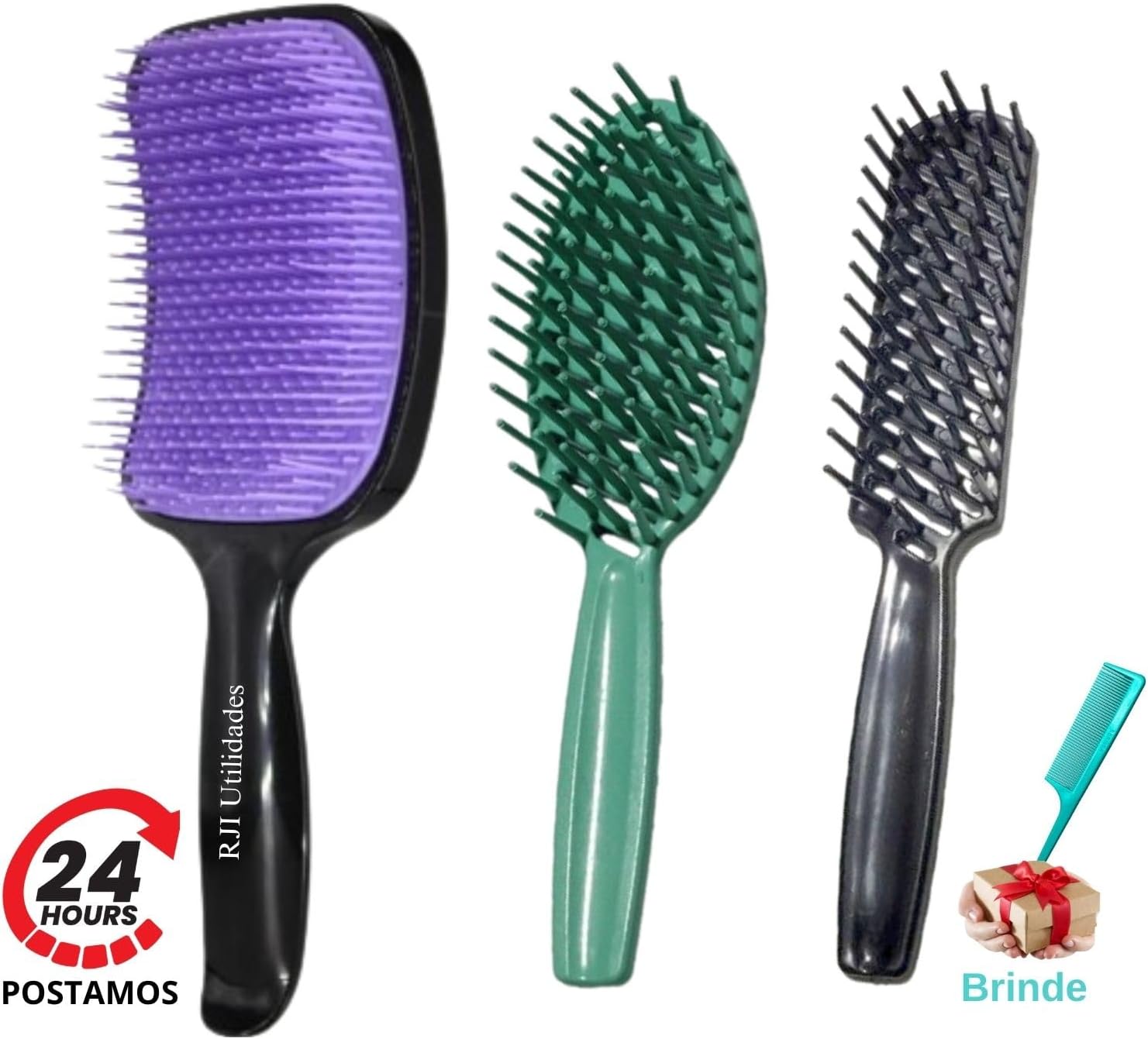 🛍️ Kit Completo de Escovas Profissionais – Inclui 3 escovas de alta qualidade para finalização, desembaraço e cuidado diário de todos os tipos de cabelo: liso, ondulado, cacheado ou crespo.