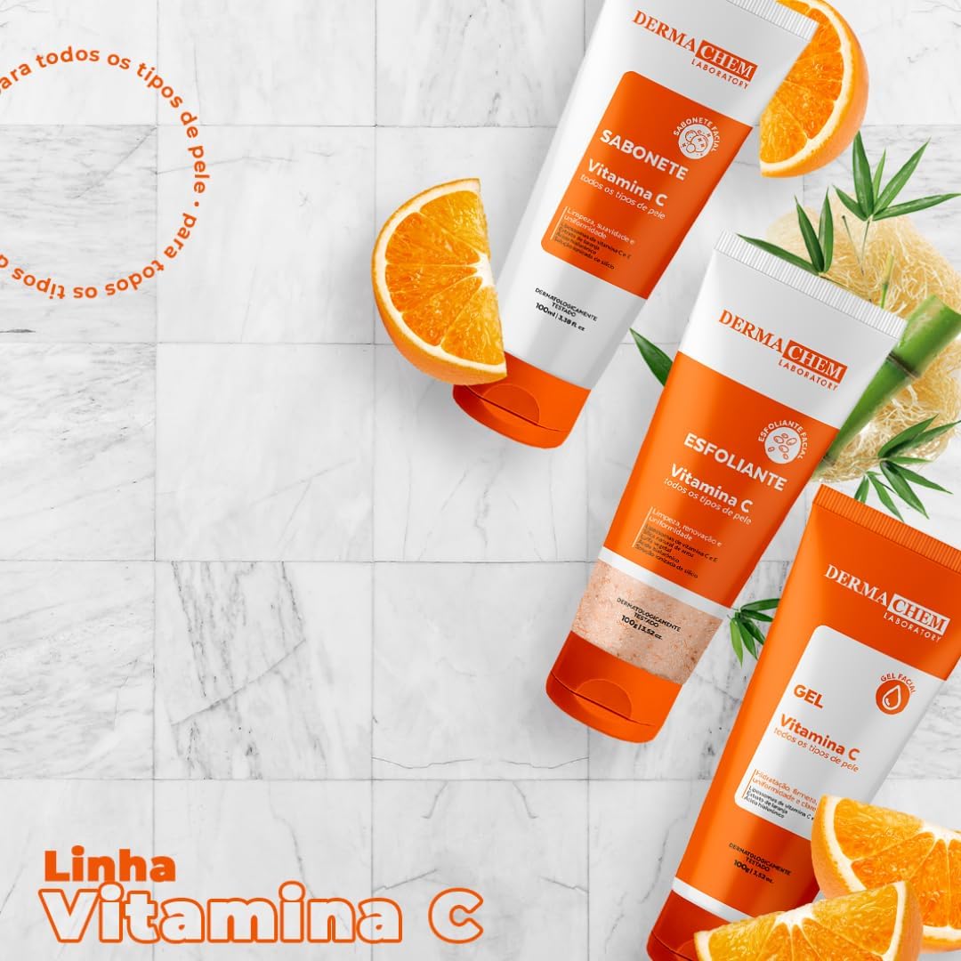 Kit Skincare Vitamina C Sabonete+Esfoliante+Gel Hidratante+Serum Clareador Dermachem