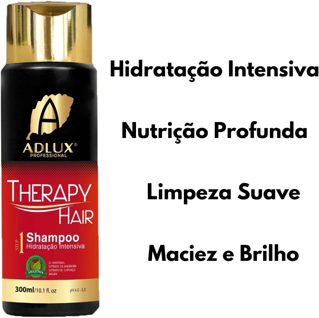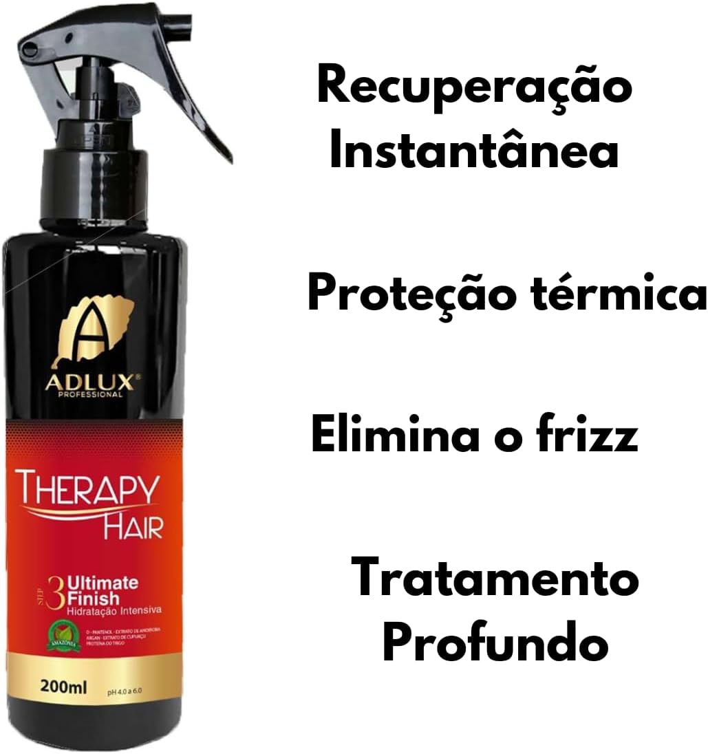 O Kit Therapy Hair Adlux Shampoo E Máscara Original Manutenção é a solução completa para a reconstrução capilar! Com efeitos de alto impacto, argila branca e proteção antifrizz, proporciona brilho, maciez e nutrição aos cabelos. Sua fórmula com fragrância agradável é indicada para todos os tipos de cabelo, garantindo hidratação, leveza e emoliência. Além disso, é dermatologicamente testado, hipoalergênico e livre de crueldade animal. BENEFÍCIOS 1- Tratamento de dentro para fora ; 2- Fortalece os cabelos danificados, quebradiços e porosos ; 3- Acelera os resultados e mantém a reconstrução do salão; 4- Reconstrução profunda com um efeito duradouro; 5- Devolve maleabilidade e maciez; 6- Resultado rápido para todos os tipos de cabelos. UTILIZAÇÃO 1)Molhe os cabelos e aplique o shampoo sobre os fios molhados, massageando-os suavemente até formar espuma abundante. Enxágue e repita a operação, deixando agir por 2 minutos, Seque o excesso de água dos fios com uma toalha. 2) Aplique uma pequena quantidade da máscara nos fios, massageando-os suavemente para uma melhor ação hidratante dos extratos naturais, deixe agir por 10 minutos, em seguida enxágue bem. 3) Após enxaguar retirando a máscara step 2, aplique uma quantidade do Ultimate Finish Therapy Hair nas mechas dos cabelos, da raiz às pontas e finalize penteando, escovando ou pranchando. Aproveite os benefícios deste produto para manter seus cabelos saudáveis e radiantes.