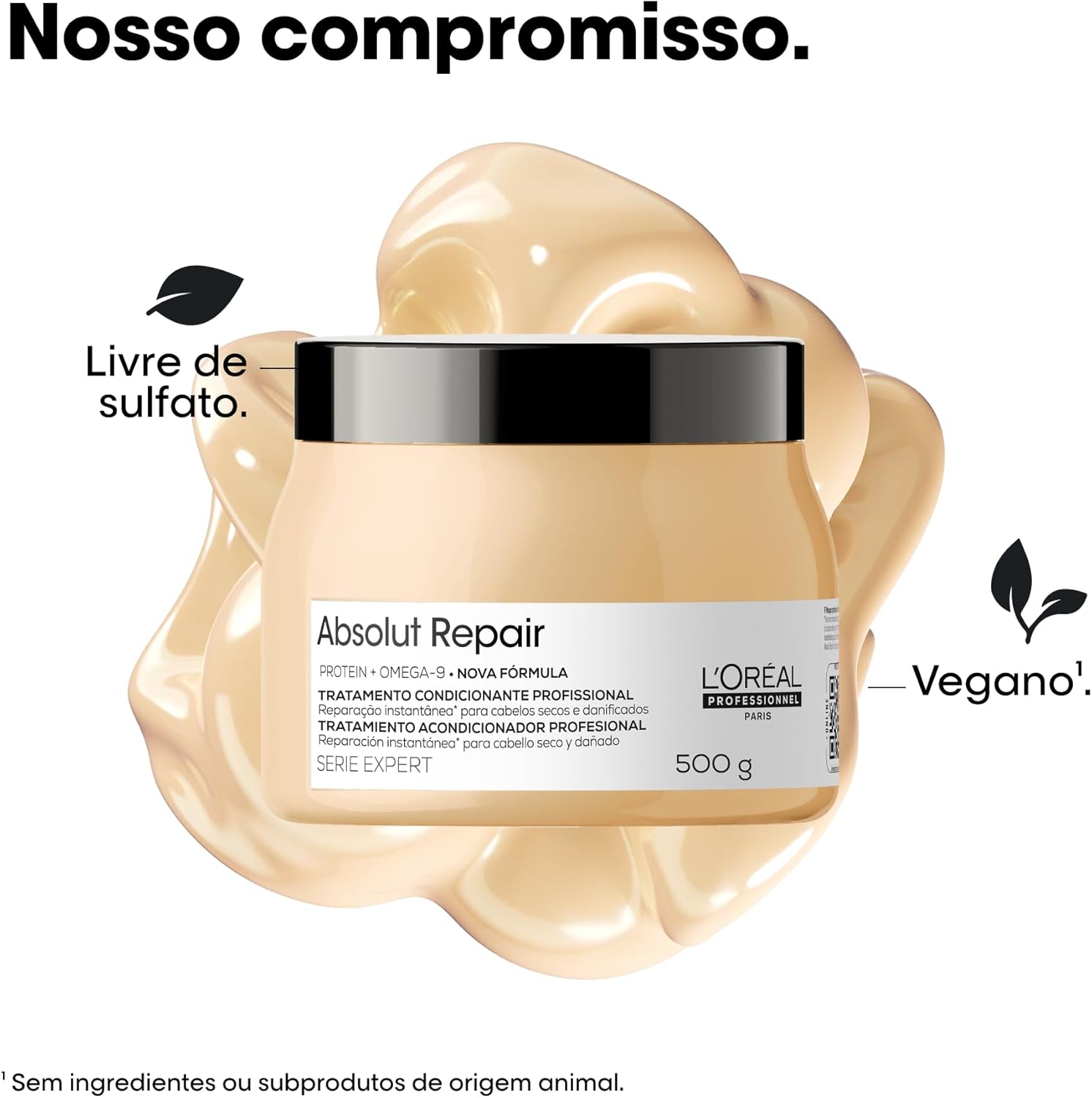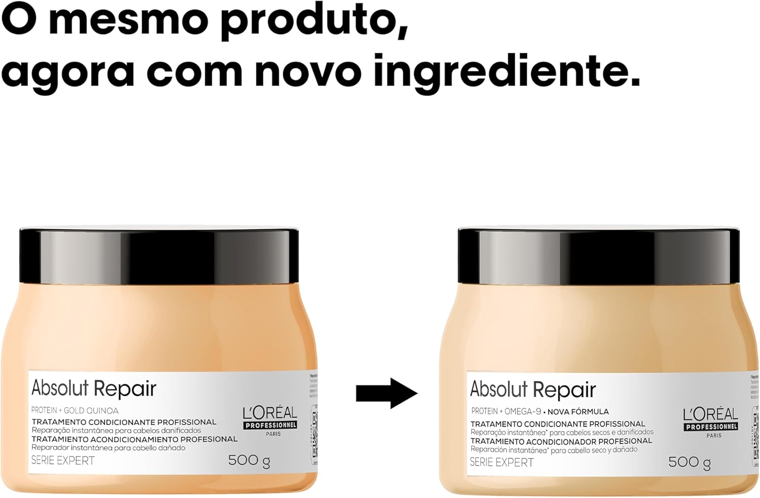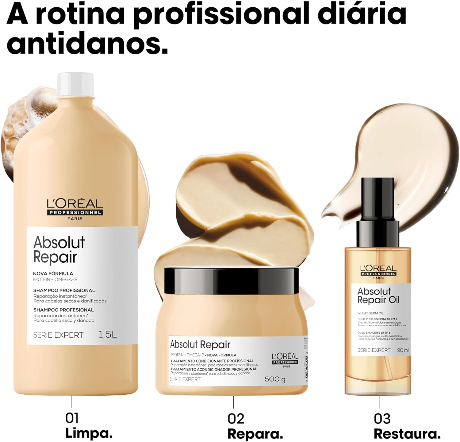 Fórmula com Quinoa Dourada, Ômega 9 e Proteína, restaura, repara e fortalece a fibra capilar com um toque leve.