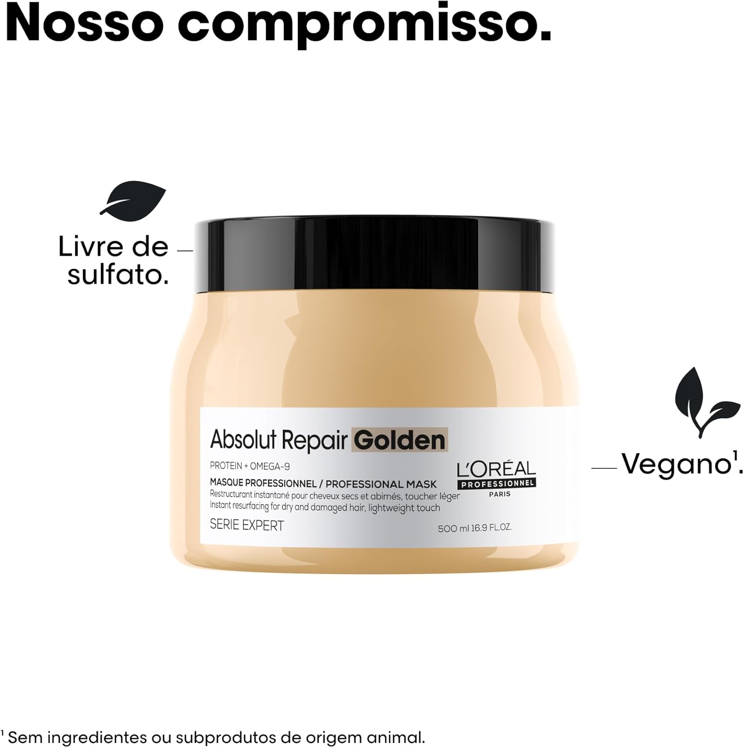 L’Oréal Professionnel Máscara de Tratamento Absolut Repair Golden, Repara Danos e Promove Brilho, Com Quinoa & Proteínas, Para cabelos finos a médios, secos e danificados, 500g