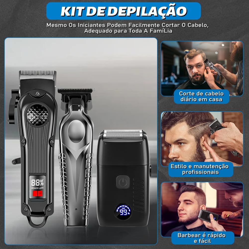 ▷ Display digital LED: Este conjunto de cortador de cabelo e lâmina para barbear é equipado com uma tela de display digital, permitindo que você visualize claramente a carga restante da bateria e o estado da bateria durante o uso. Além disso, conta com uma bateria de alta capacidade e design de carregamento rápido via USB, possibilitando até 5 horas de uso contínuo, tornando-o ideal para viagens de trabalho ou férias.
