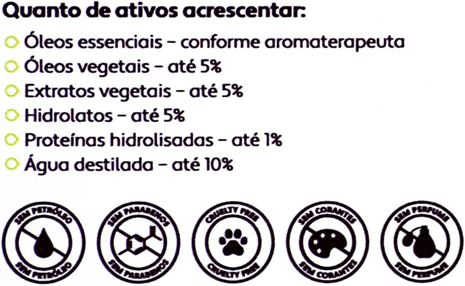Base para tratamentos capilares. Pode receber óleos essenciais, óleos vegetais, extratos e proteínas