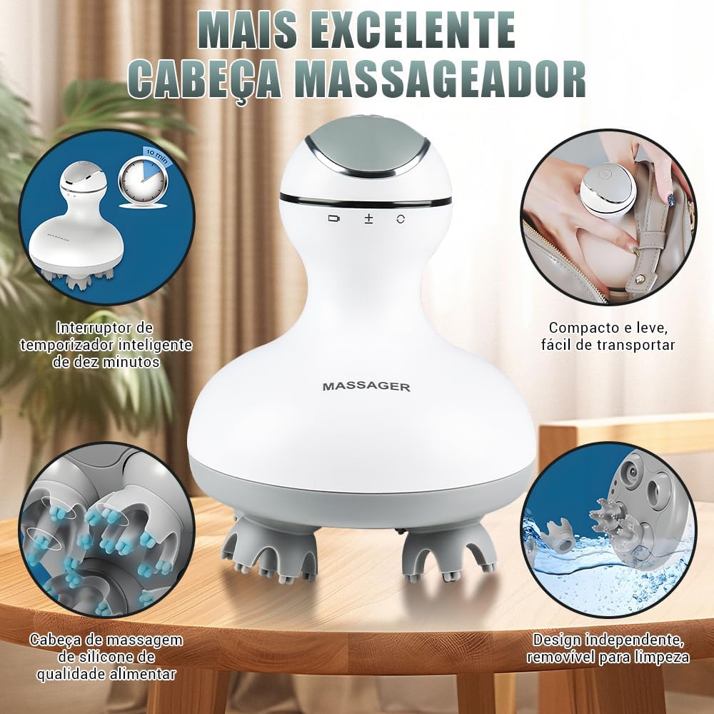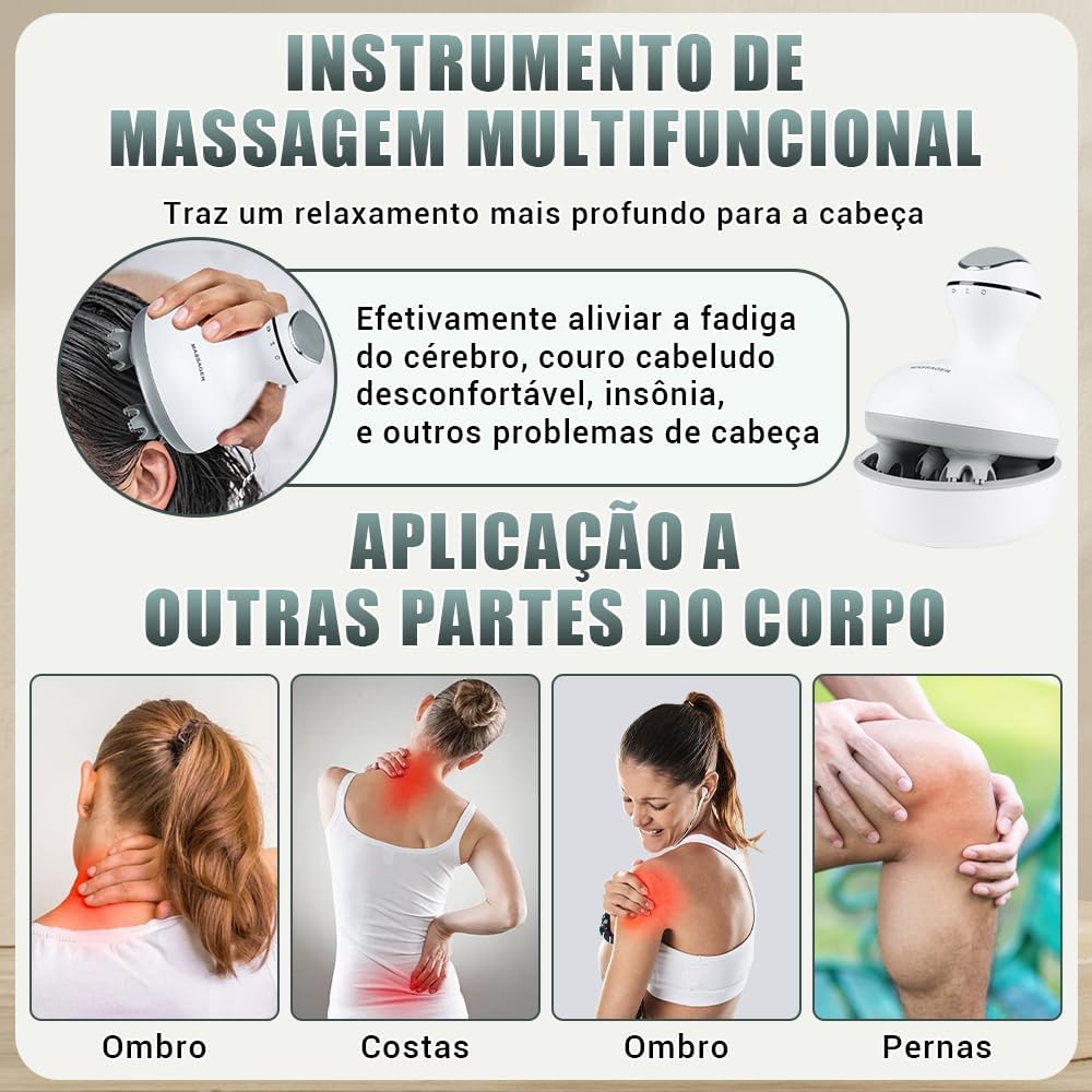 👊O massageador de cabeça inteligente Comfier é equipado com quatro cabeças de massagem, cada uma com 21 seções individuais para um total de 84 cabeças de toque. Estas cabeças de massagem giram no sentido horário e contra o horário, proporcionando-lhe uma experiência de massagem confortável, ajudando a estimular o crescimento do cabelo, melhorando a circulação sanguínea no couro cabeludo e eliminando eficazmente a fadiga e o estresse.