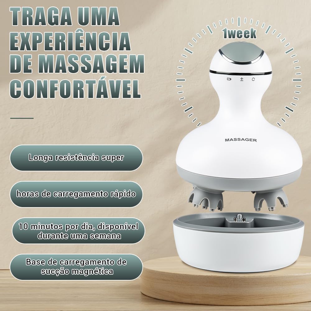 👊 Design portátil: Este massageador de cabelo apresenta uma base magnética para fácil armazenamento e armazenamento, superando o design de outros massageadores regulares. Basta colocá-lo de volta na base após o uso. Pesa apenas 400 gramas, é compacto e fácil de transportar numa bolsa, permitindo-lhe desfrutar de uma experiência de massagem relaxante a qualquer hora e em qualquer lugar, tornando-o o seu companheiro relaxante ideal.