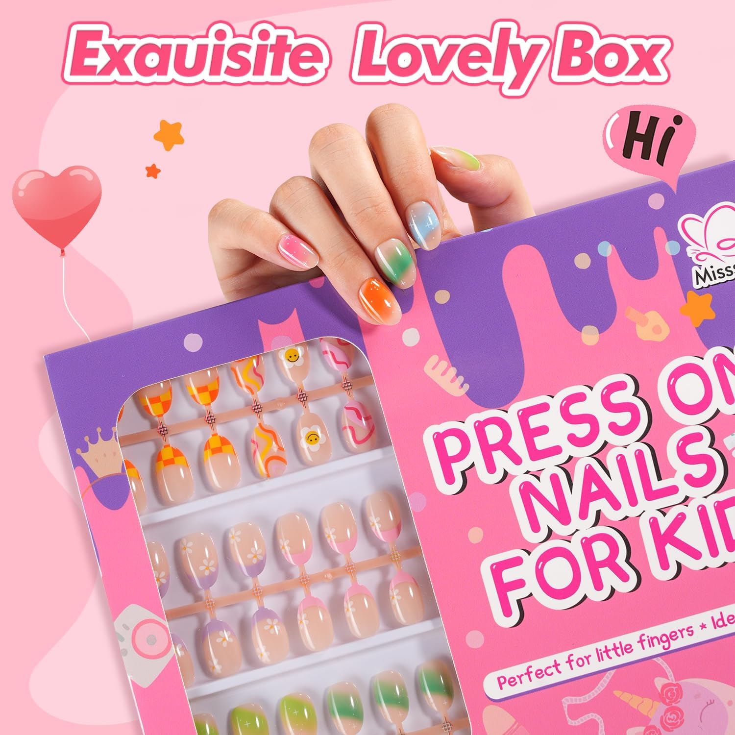 【Unhas falsas para crianças como presente】 As unhas de pressão para crianças são perfeitas para arte de unhas faça-você-mesmo, são presentes ideais para meninas para aniversários e presentes de Natal.