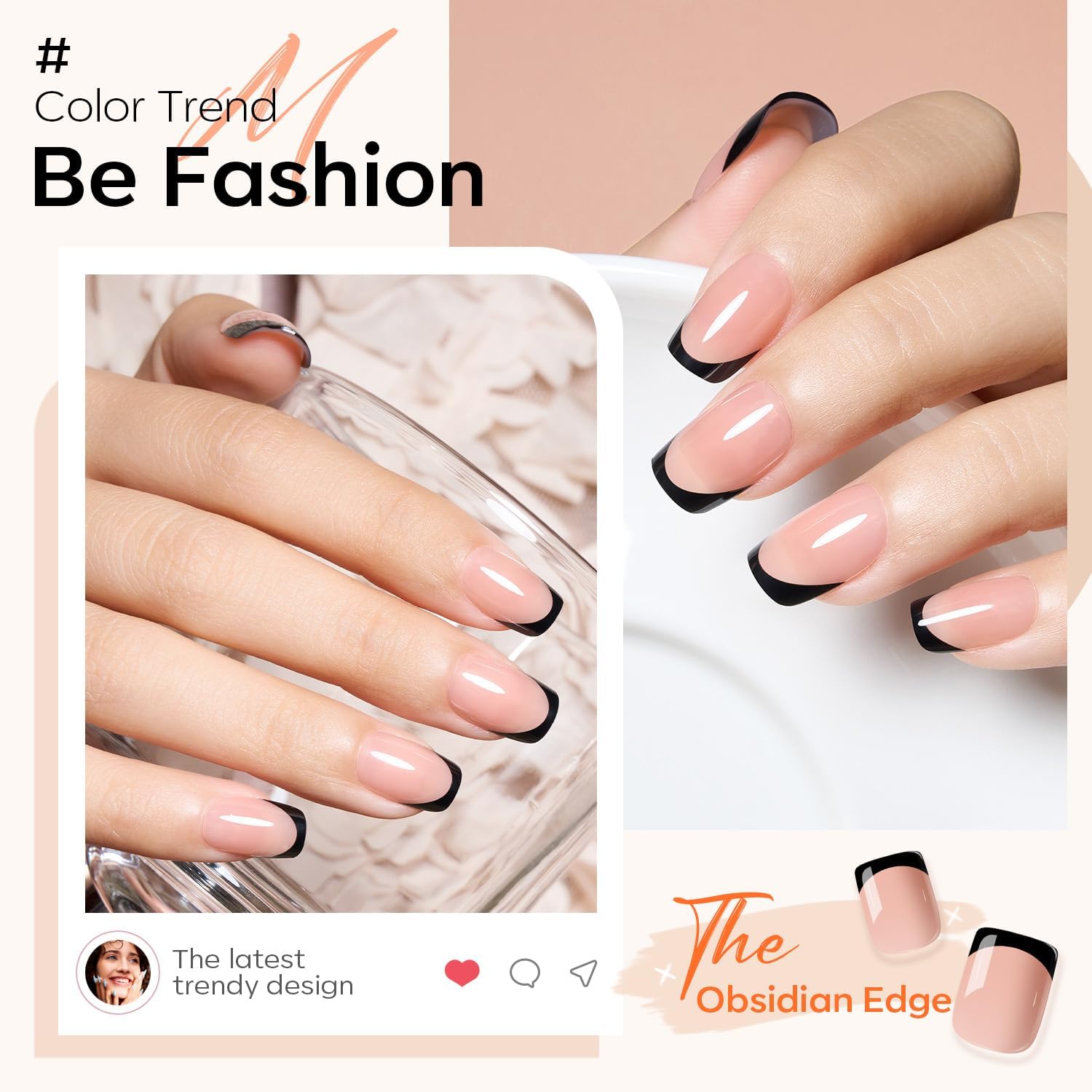 Black French Press On Nails: Modelones press on nails short give you infinite opportunity to play around with different trendy nail styles for every mood, every outfit, and everyday