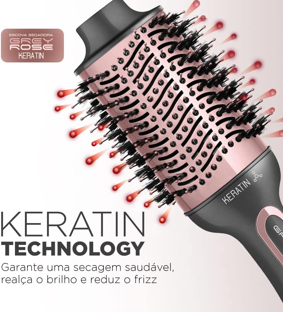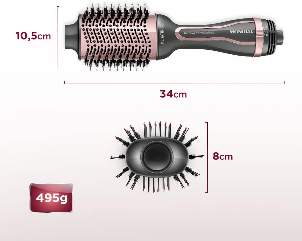 Design Oval: Facilita a escovação. O formato da escova secadora é perfeito para alisar as mechas.
