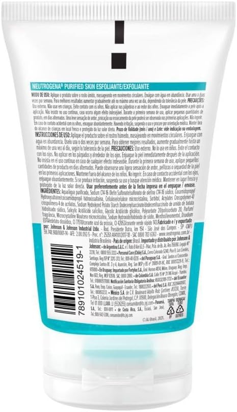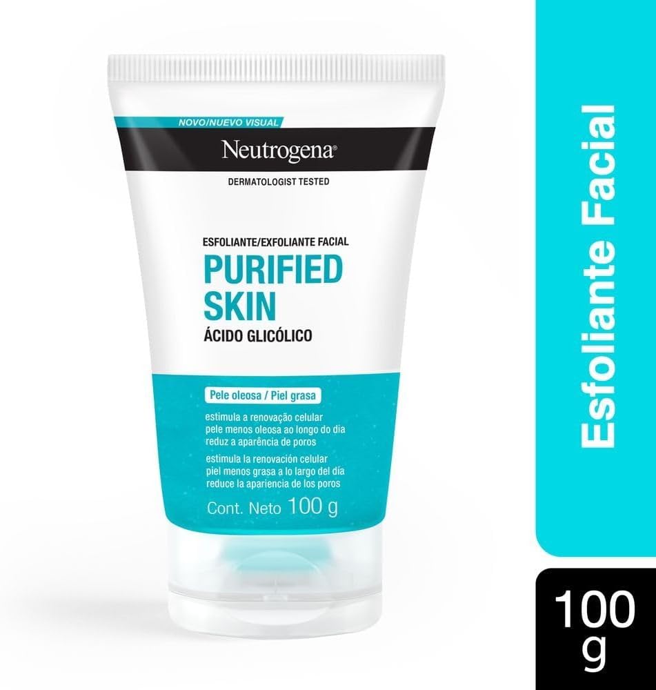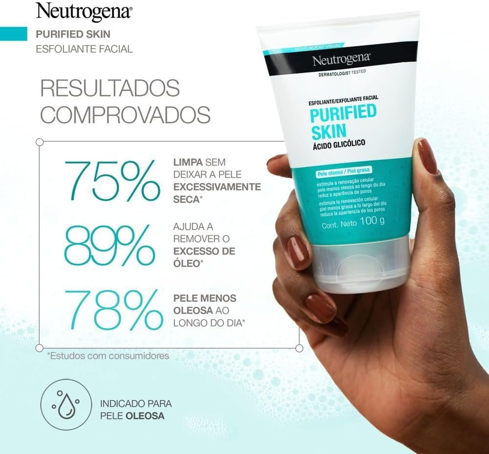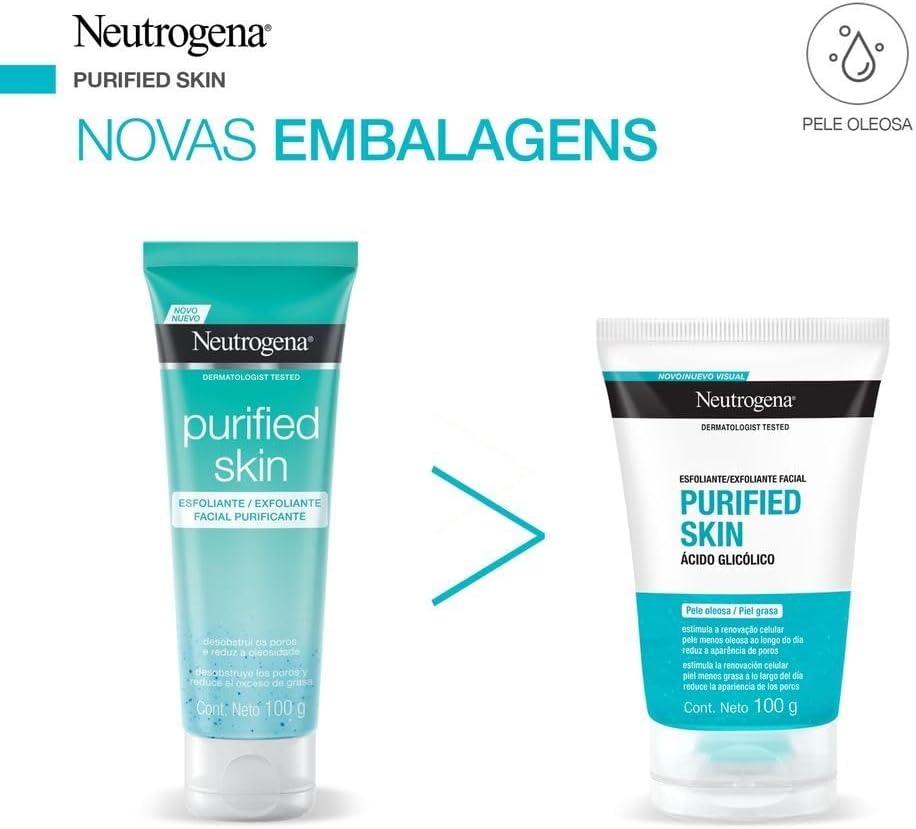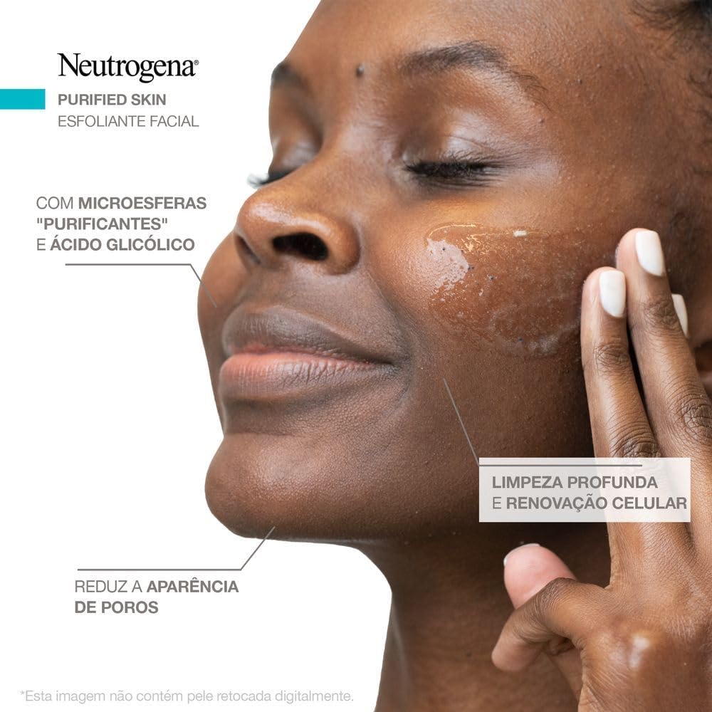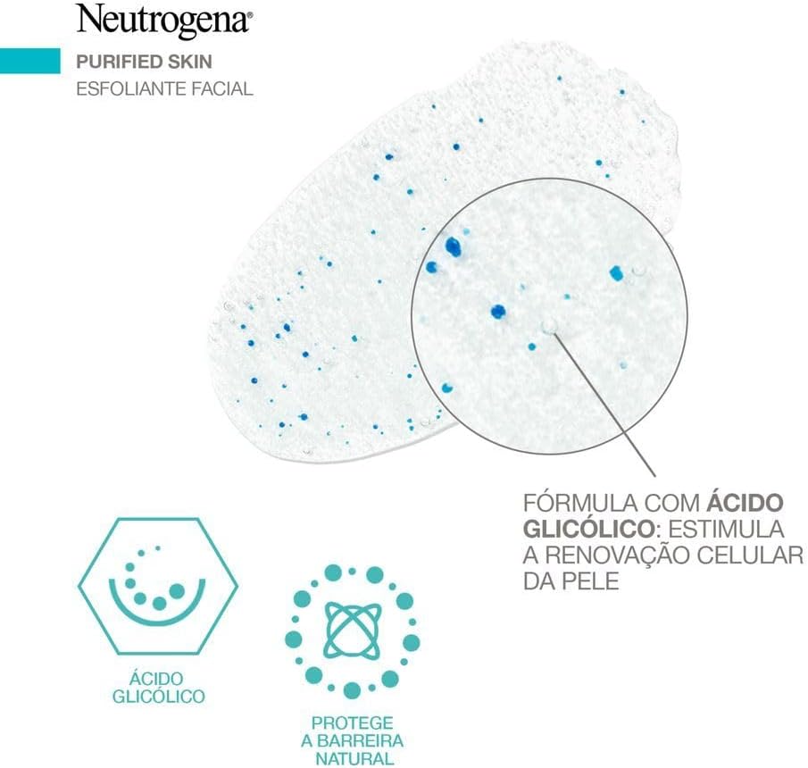O uso do esfoliante neutrogena purified skin permite a desobstrução dos poros, eliminação das impurezas e toxinas e redução da oleosidade da pele