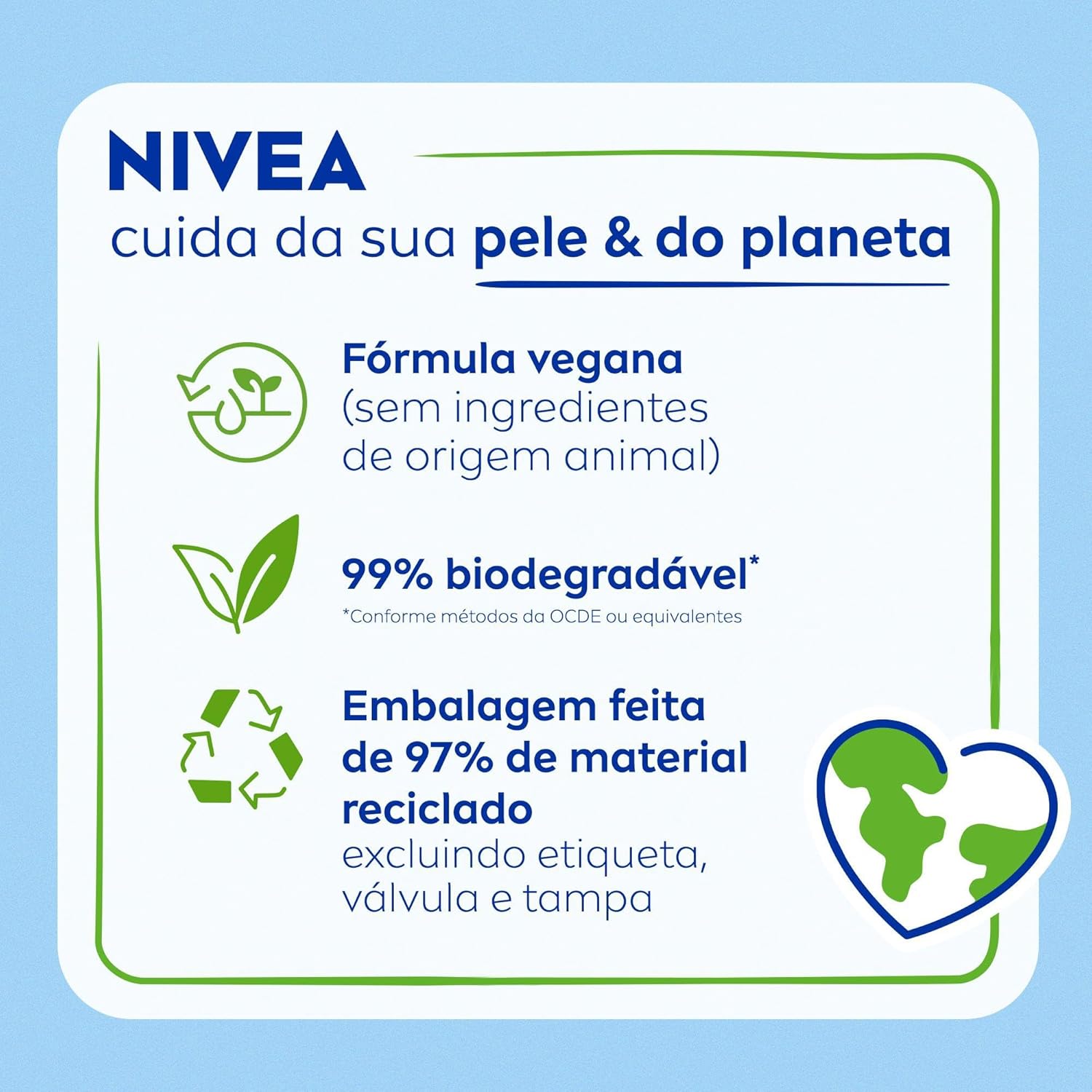 O que é?Sabonete mousse para o rosto que limpa todas as impurezas e resíduos de maquiagem. Cuide bem da sua pele. Garanta o seu!Para que serve o Mousse de Limpeza Facial Nivea?Rico em vitaminas, revigora a pele e deixa uma sensação refrescante. Equilibra a hidratação natural da pele.Benefícios e diferenciais- Com Vitamina E, essencial para pele saudável- Com Vitamina B5, que auxilia na renovação da pele- Para todos os tipos de peleComo usar o Mousse de Limpeza Facial Nivea?Aplique o sabonete em mousse e massageie suavemente rosto e colo. Enxágue com água abundante. Evite contato com os olhos.Uma unidade de embalagem contém 150ml