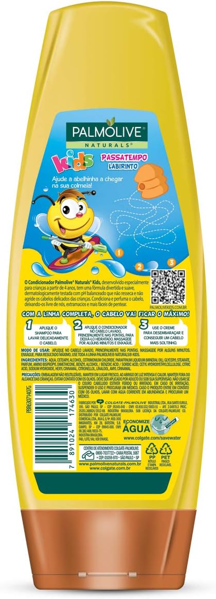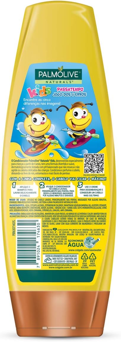 Chega de lágrimas na hora do banho. Com fórmula dermatologicamente testada, desenvolvida especialmente para crianças a partir de 4 anos, a linha Palmolive Naturals Kids para todos os tipos de cabelo é a solução que os pais buscavam para proporcionar aos filhos um banho divertido e deixar seus cabelos lindos, cheirosos, macios e sem nós.Instruções de uso: Após a lavagem, aplique no cabelo molhado, principalmente nas pontas. Massageie. Deixe agir por alguns minutos e Enxágue bem.