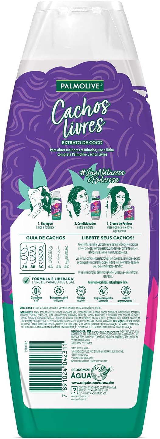 Hidratação sem frizz para cabelos cacheados instruções de uso: aplique o shampoo suavemente para limpar e fortalecer. Massageie e enxágue. Se desejar, repita a operação. Após shampoo, utilize o condicionador para nutrir e hidratar.