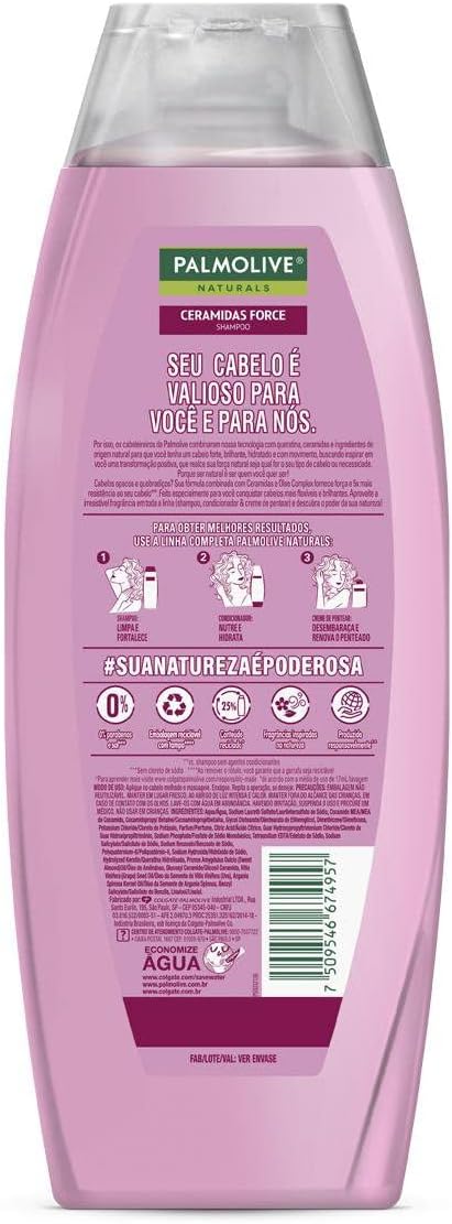 O shampoo Palmolive Naturals Ceramidas Force combina o complexo de óleo com ceramidas, fornecendo força e 5x mais resistência ao seu cabelo*. Feito especialmente para você conquistar cabelos mais flexíveis e brilhantes. Aproveite a irresistível fragrância em toda a linha (shampoo, condicionador & creme de pentear) e descubra o poder da sua natureza!
