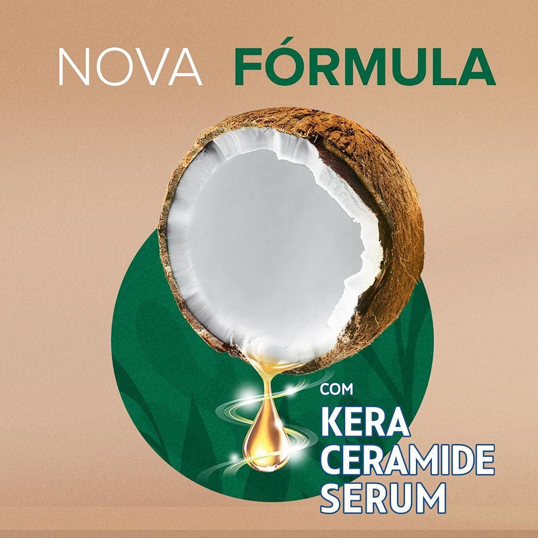 Shampoo com extrato de coco e leite, que proporciona uma nutrição anti-nós e suavidade que dura (com o uso de toda a linha – shampoo e condicionador).