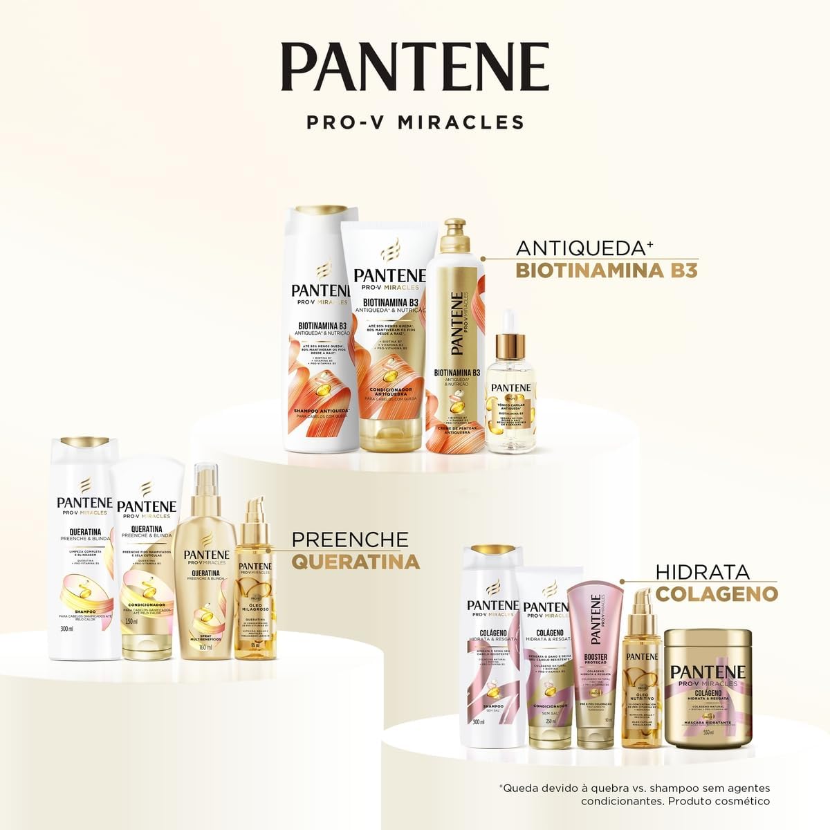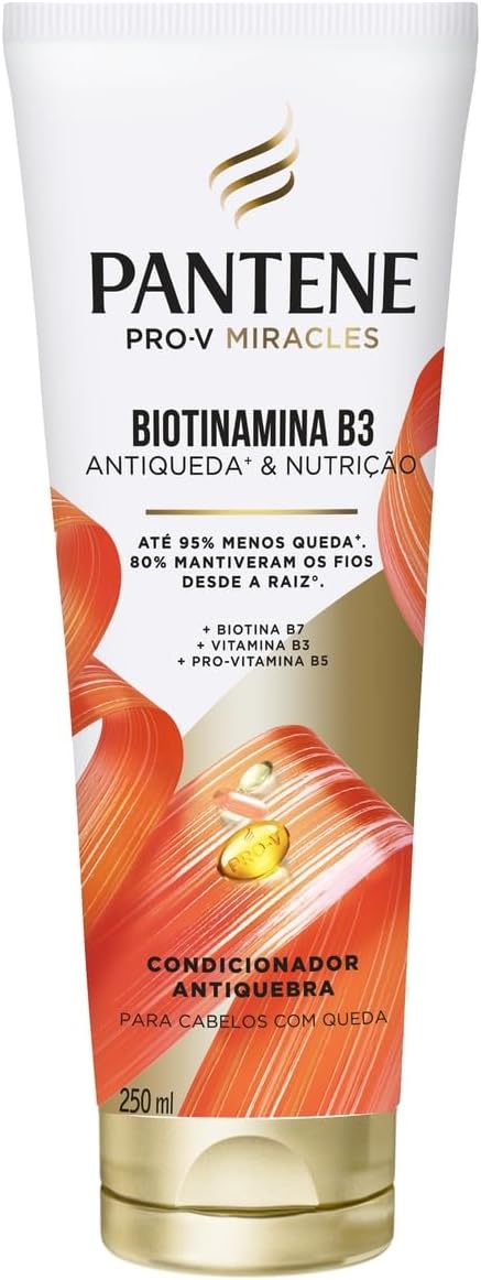Você tem queda de cabelo, fios fracos e quebradiços? Pantene apresenta o Condicionador Antiquebra Biotinamina B3 Antiqueda* & Nutrição. Fórmula com complexo multivitamínico: Biotina B7, Vitamina B3, e Pro-Vitamina B5. A linha Biotinamina B3 promove um cabelo bonito e saudável, segurando os fios desde a raiz° e reduzindo até 95% da queda*. Experimente o Condicionador que fortalece e traz maciez, nutrição e hidratação profunda, reduzindo a quebra. Use diariamente, ideal para cabelos com queda devido à quebra. *Queda devido à quebra vs. shampoo sem agentes condicionantes. °Com base em um estudo clínico onde 80% dos participantes mantiveram o mesmo número de cabelos em 8 semanas. Resultados usando o regime Pantene Biotinamina B3 incluindo o tônico.