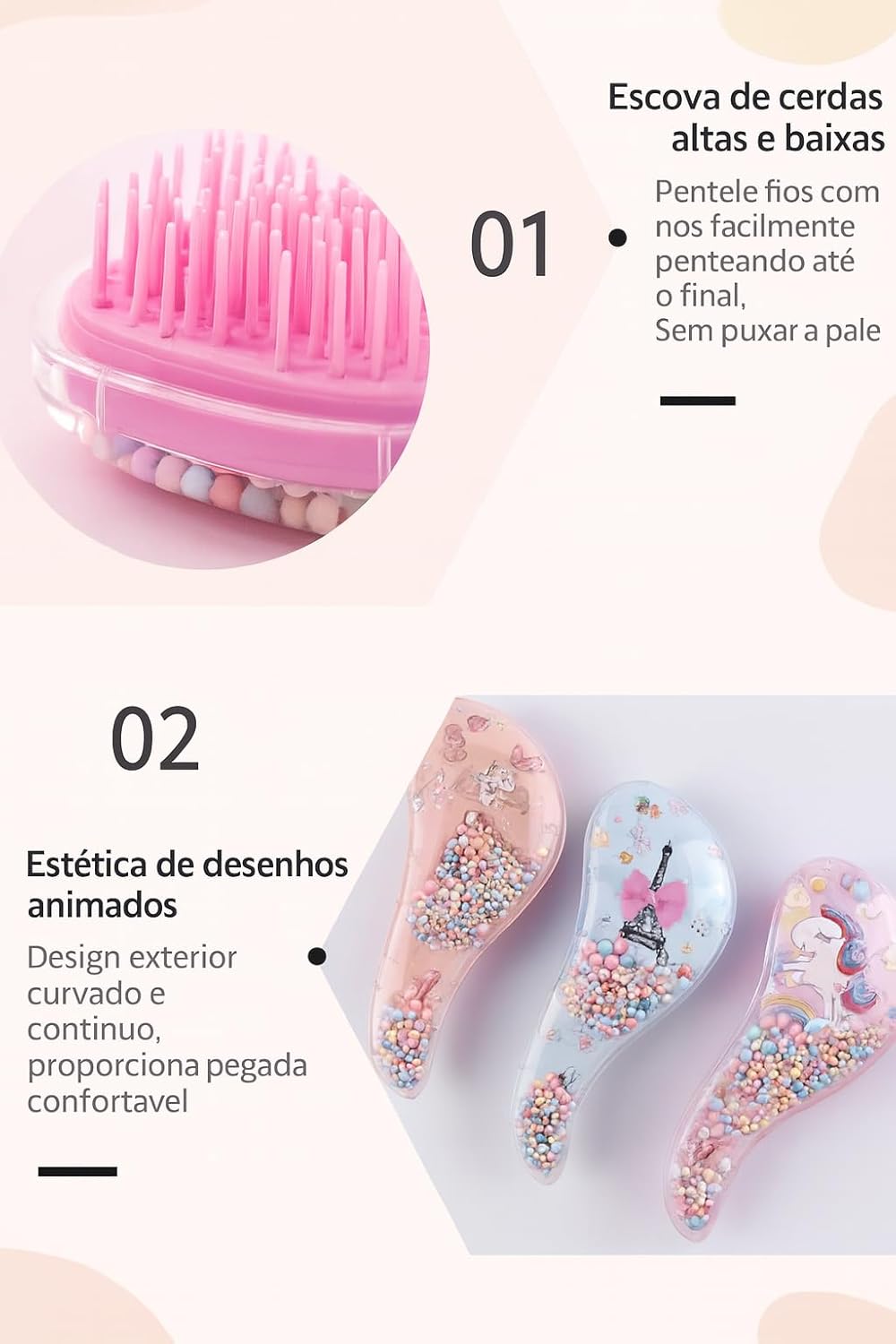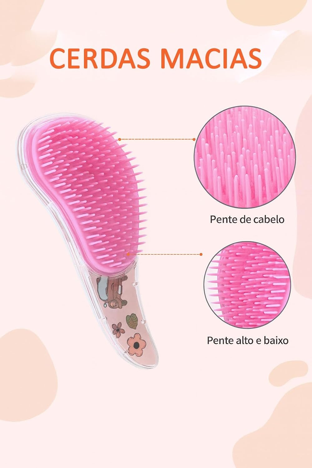 👧 Feita para meninas e crianças – Escova delicada que desembaraça sem dor