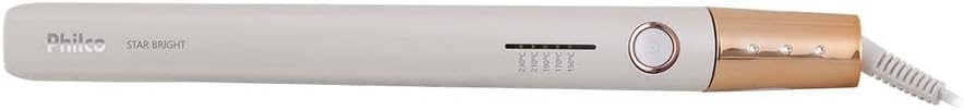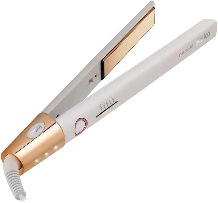 Realce sua beleza com a Prancha Philco PPR03 Star Bright Branco, ela conta com 5 níveis de temperatura, 150°C, 170°C, 190°C, 210°C e 230°C podendo ser ajustada de acordo com a sua necessidade. Seu revestimento em titanium permite o alcance de altas temperaturas em menos tempo, além de um liso mais intenso e modelagens mais precisas. Já as chapas flutuantes, deslizam suavemente proporcionando um alisamento uniforme e sem marcas. A pintura de íons tourmaline mantêm a umidade natural dos fios, evitando danos e deixando os cabelos com muito brilho e sem frizz. Fique linda com Philco! Philco: Estamos sempre à disposição, para dúvidas acesse: suporte.philco.com.br / (11) 4858-1141 São Paulo capital e região metropolitana / (47) 3431-0499 Demais regiões.