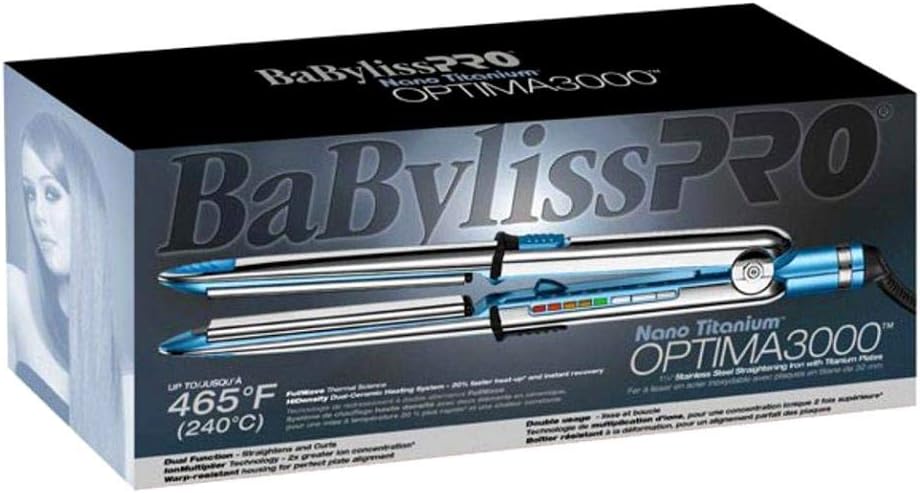 A Prancha Babyliss Pro Nano Titanium Optima3000 leva a noção de prancha alisadora a outro nível. Com a sua dupla função alisa e faz cachos, ficou mais facil realizar o liso perfeito ou cachos extremamente lindos. Este é o ultimo avanço em ferramentas para profissionais que buscam qualidade e perfeição em seus penteados.O exterior convexo em aço inoxidável SUS304 é leve e resistente a corrosão e deformação Placas em titânio, oferecem transferência de calor altamente eficiente e automaticamente alisam, condicionam e dão brilho Sistema de aquecimento em cerâmica dupla de alta densidade produz mais energia para esquentar 20% mais rápido Ciência térmica de onda completa oferece recuperação instantânea e temperatura constante Tecnologia de multiplicador de íons – 2 vezes a concentração de íons*, para cabelos mais brilhosos, suaves e lindos Pontas frias em silicone e outros elementos sensíveis ao calor são feitas de silicone e Ryton, materiais altamente resistentes ao calor Características Tamanho do patin: 1+1/4 = 3cm ” Cabo rotativo com alça para pendurar; Controlador digital de temperatura; Temperatura mínima: 148ºC e máxima: 240ºC (450ºF) Selo do Inmetro Garantia de 6 meses By Roger 6 Meses de Garantia
