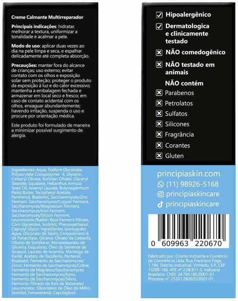 PRINCIPIA, Creme Facial Calmante Multirreparador 17,5% Mix de Ativos CM-01