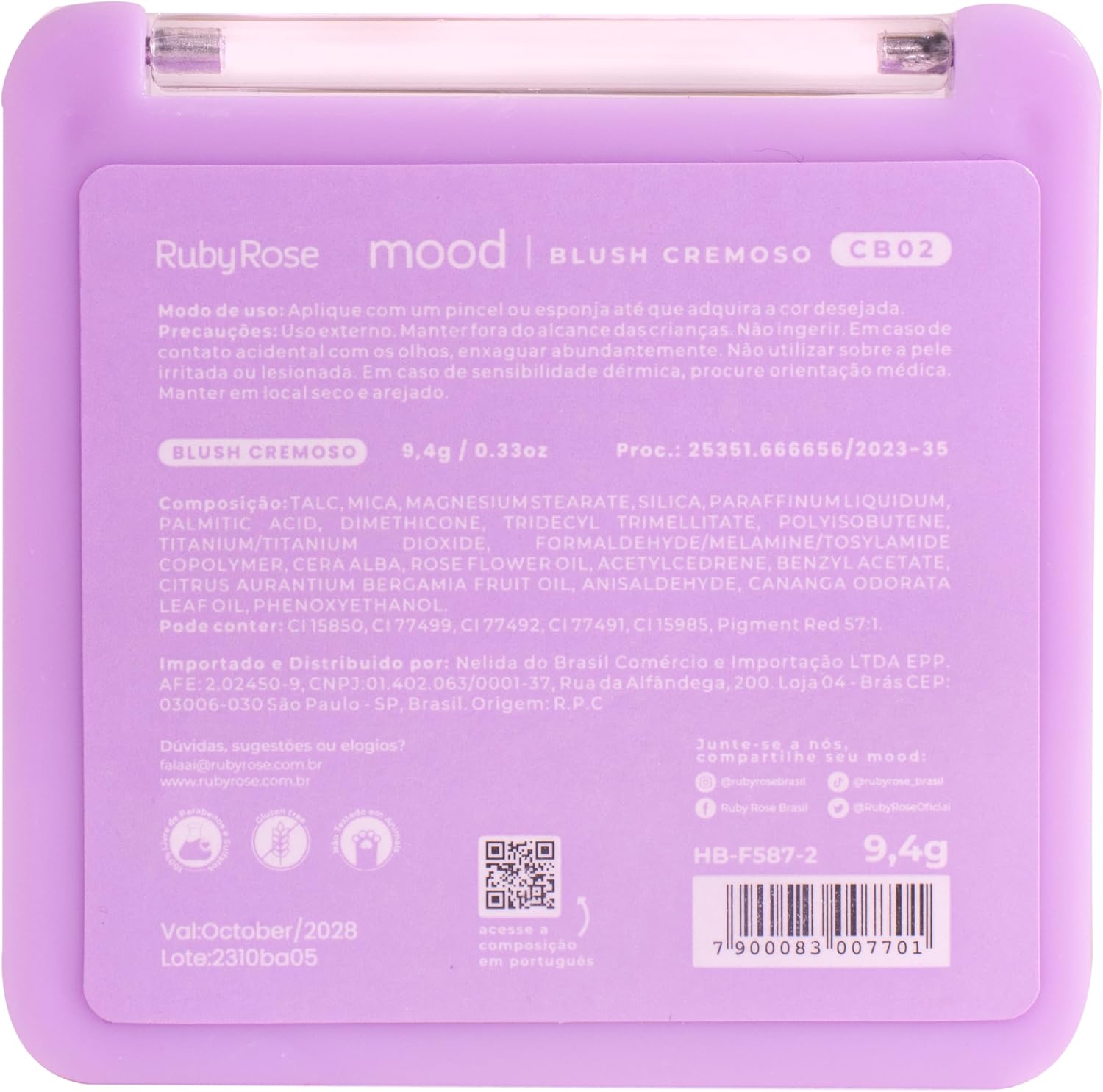 O Blush Cremoso Mood da Ruby Rose oferece uma aplicação suave e fácil, proporcionando um acabamento luminoso e natural às maçãs do rosto. Sua textura cremosa desliza suavemente sobre a pele, proporcionando uma cor suave e radiante.