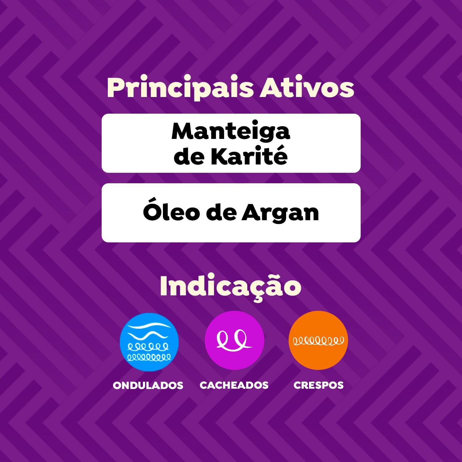 ATIVOS NUTRITIVOS. Contém Manteiga de Karité, rica em ácidos graxos essenciais, além de Óleo de Argan, com alto poder de nutrição.