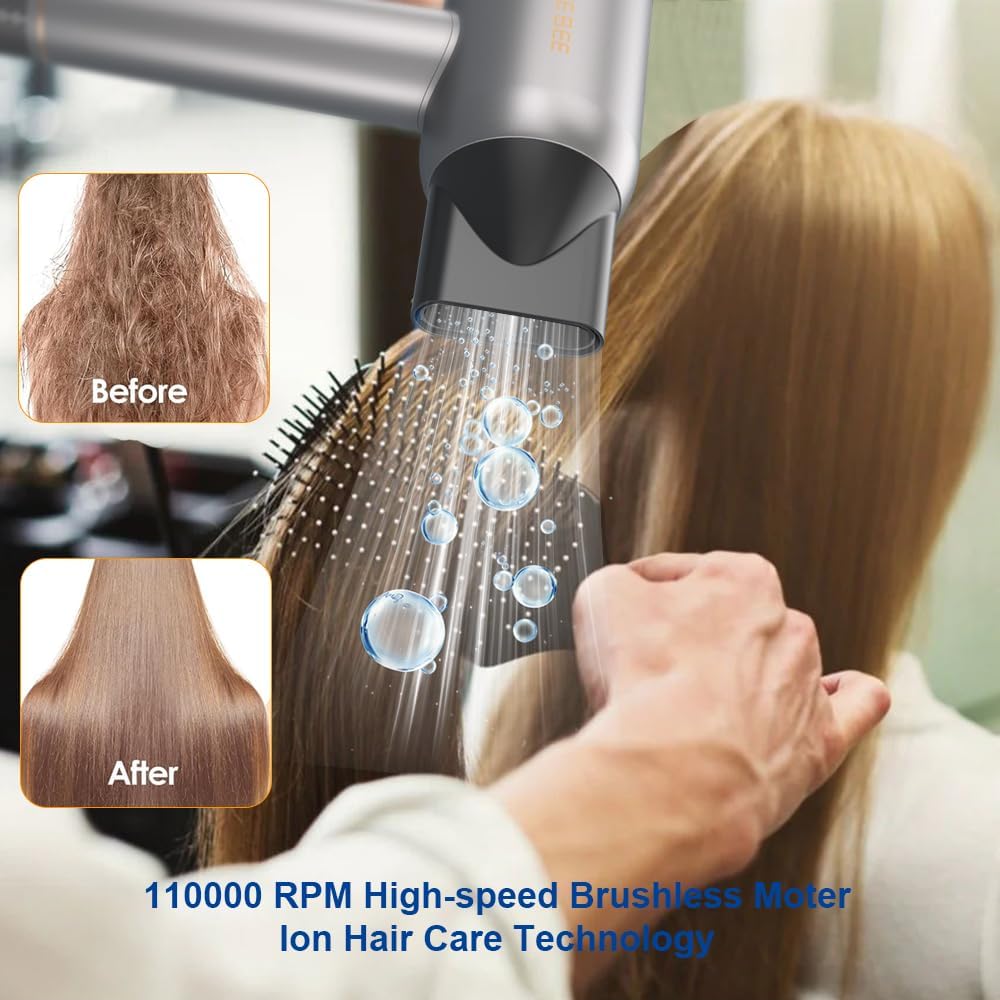 Secador de Cabelo Profissional 1500W, Baixo Ruído, Íons Negativos, Controle de Temperatura, Secador de Cabelo Com Difusor, Motor Brushless de Alta Velocidade (120000 RPM) , Secagem Rápida, Portátil, 127v/20A