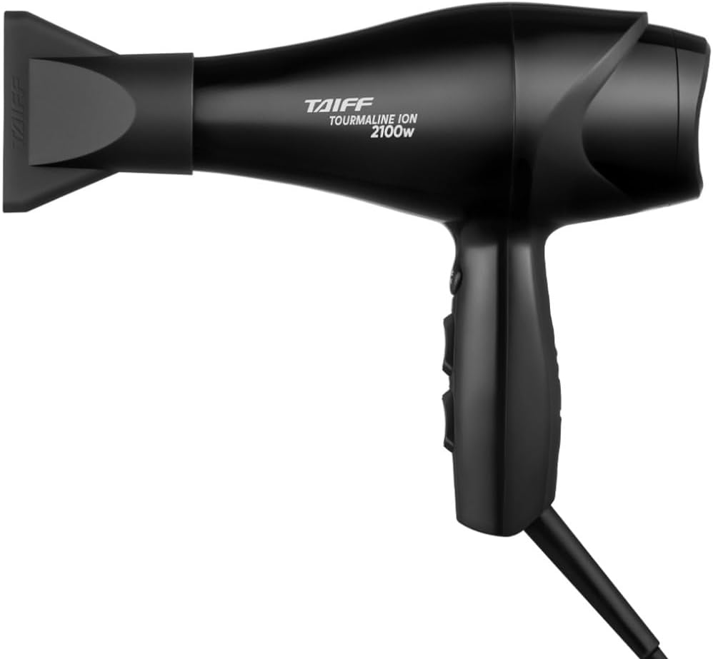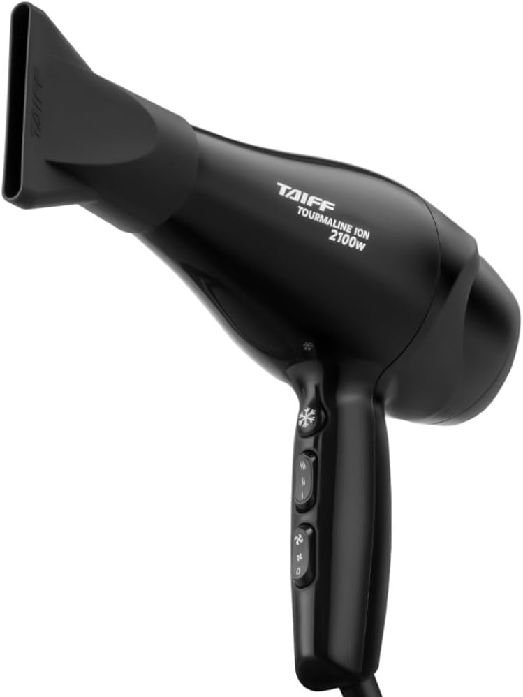 O Secador Tourmaline Íon Cerâmica 2100W da Taiff combina alto desempenho profissional com cuidados intensivos para os fios: sua potência garante secagem rápida, enquanto a tecnologia de turmalina potencializa a emissão de milhões de íons negativos que reduzem o frizz e promovem brilho, maciez e hidratação natural por meio da emissão de raios infravermelhos pela grade cerâmica. Com motor AC, botão exclusivo Click Air para jato frio com um clique, tampa traseira removível que facilita a limpeza e cabo de 3 metros para maior mobilidade.