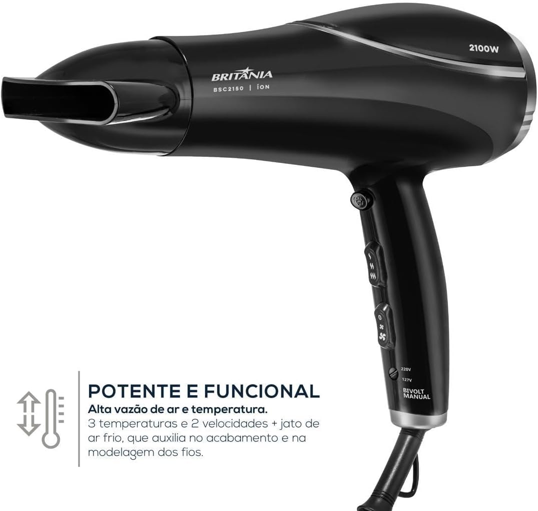 Secador de Cabelos Britânia BSC2150 2100W Preto e fumê Bivolt