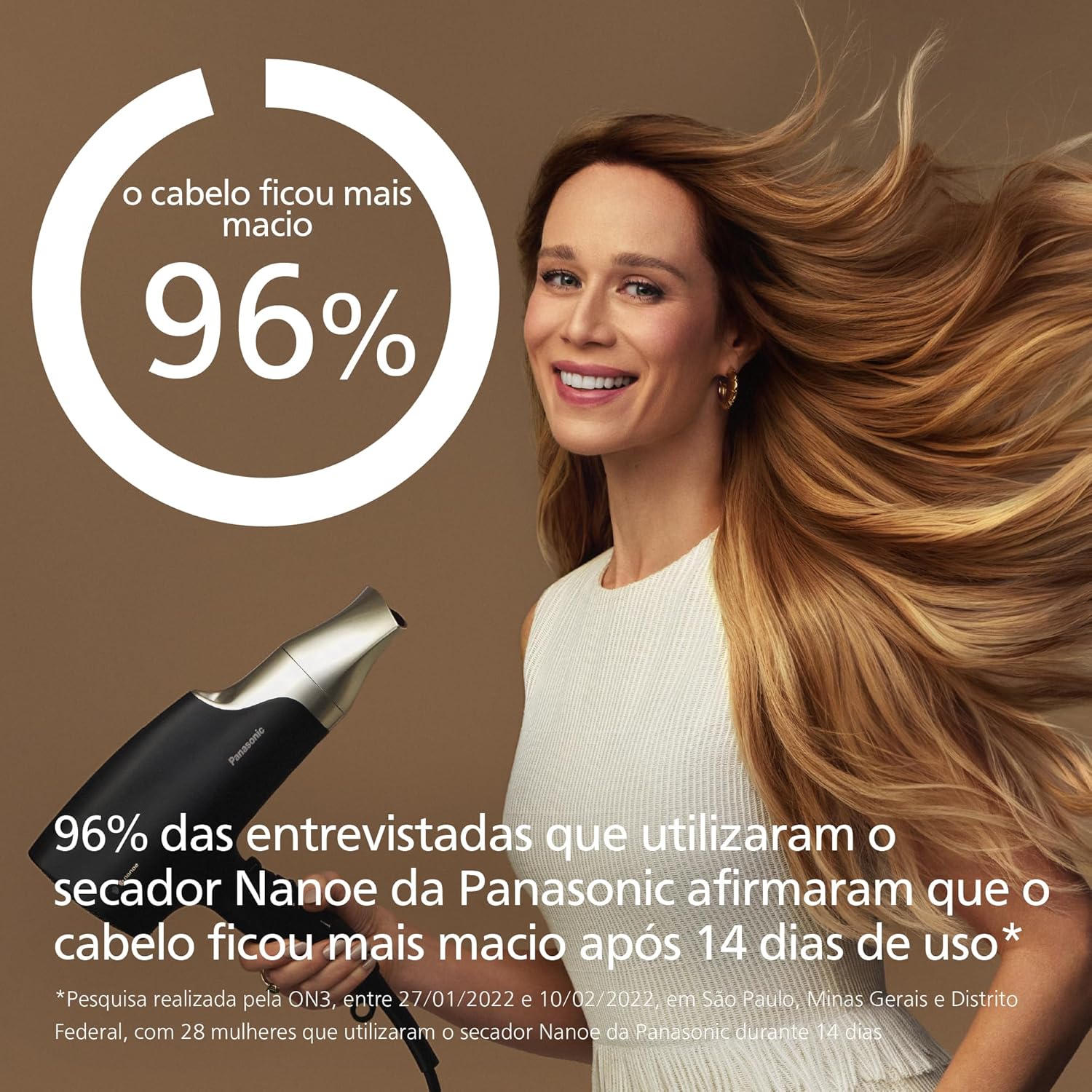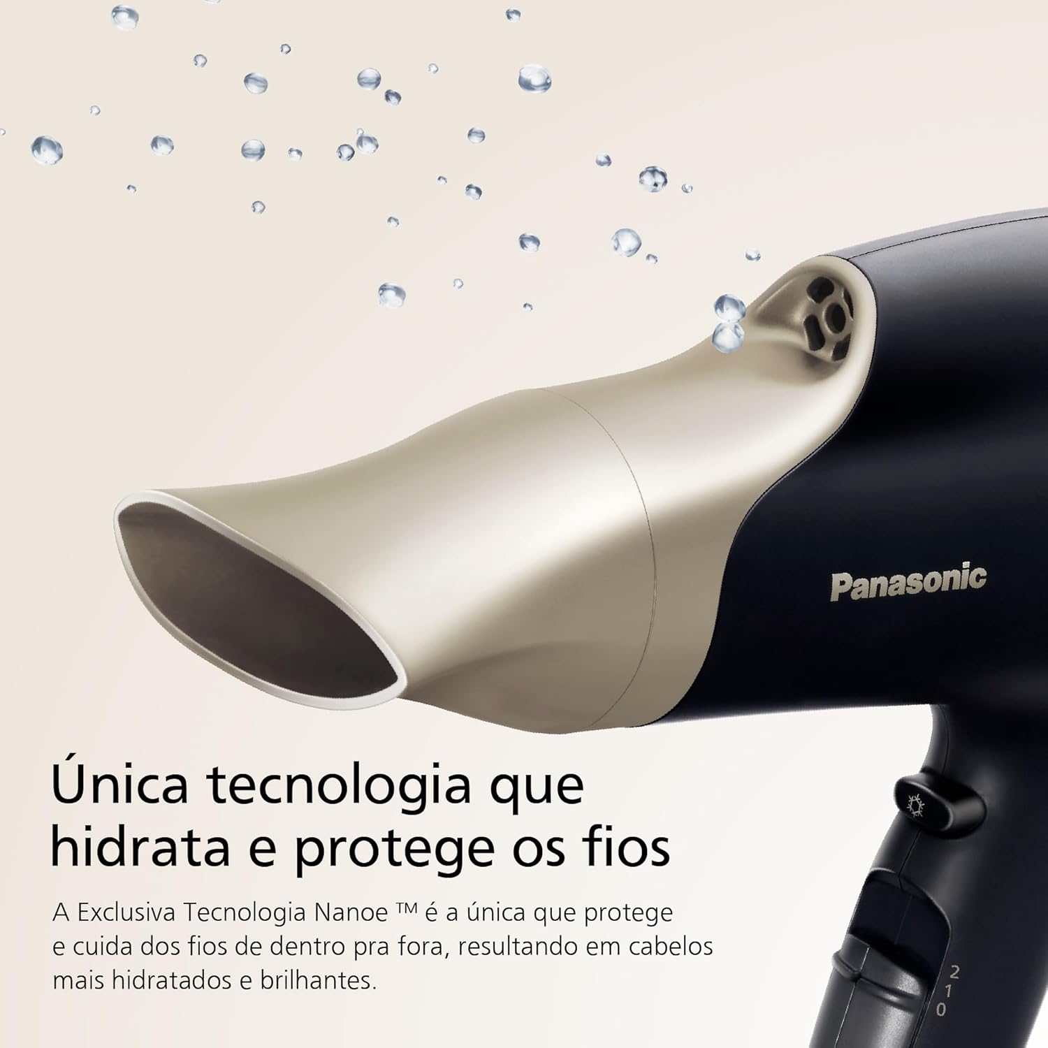 A Exclusiva Tecnologia Nanoe é a única que hidrata e protege os cabelos e o couro cabeludo, cuidando dos fios de dentro para fora. Com o poder de extrair até 1000 vezes mais umidade do ar, a tecnologia emite nanopartículas que penetram nos fios, deixando-os muito mais hidratados, saudáveis e com brilho natural.