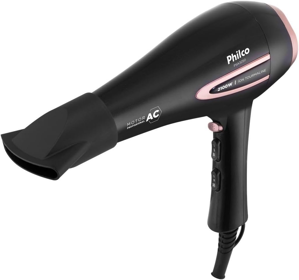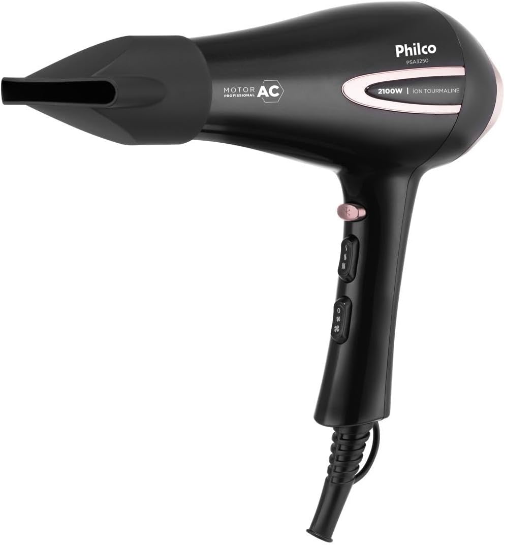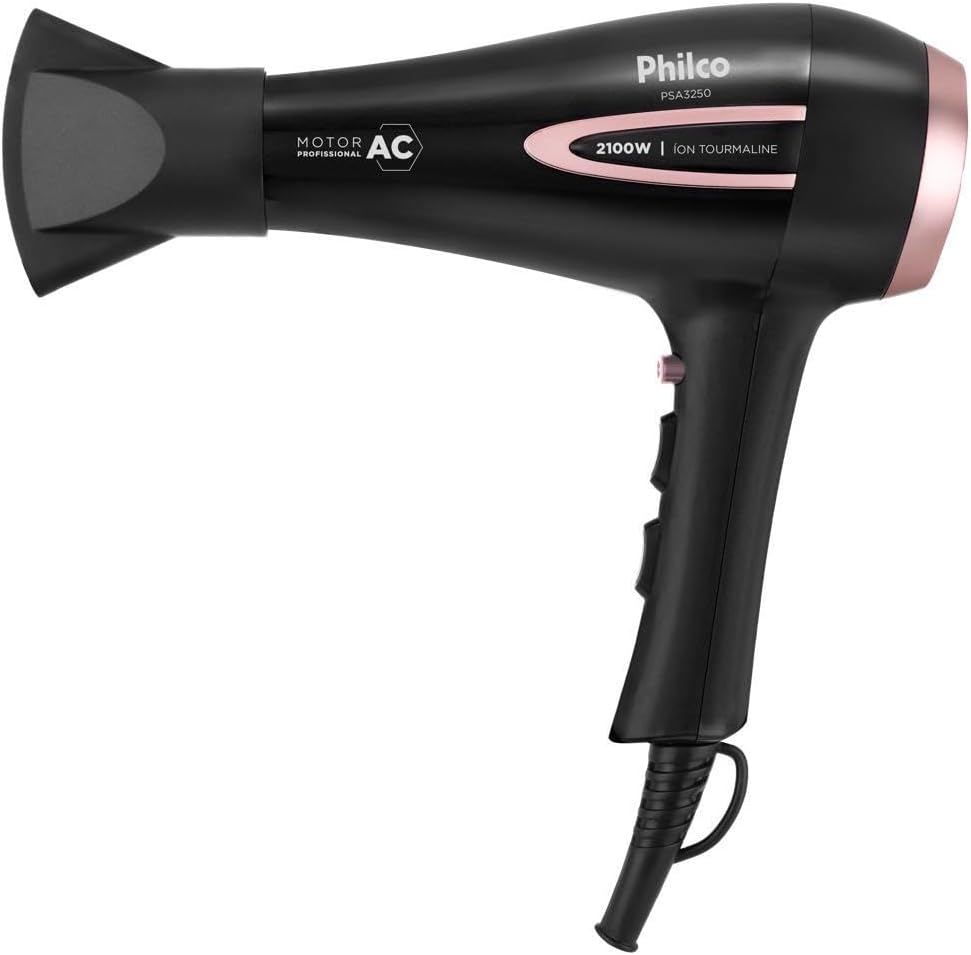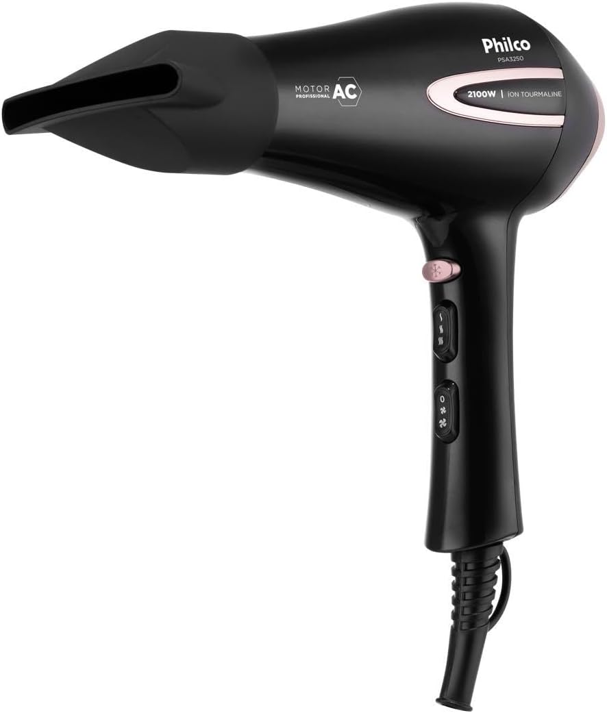 O Secador de Cabelos Philco PSA3250 Íons Tourmaline 2100W é a combinação perfeita de potência, inovação e durabilidade. Com sua incrível potência de 2100W, ele garante alto desempenho na hora de secar e cuidar dos seus cabelos. Equipado com um motor AC Profissional de alta performance e temperatura, o PSA3250 da Philco oferece mais vento e menos ruído. Além disso, possui Íons Tourmaline, responsável por deixar seus cabelos mais macios, brilhantes e livres de frizz. E para facilitar ainda mais o processo de secagem e modelagem, o secador vem com um bocal concentrador que direciona o calor de forma eficaz, tornando a secagem e a modelagem dos fios mais precisa e eficiente. O Secador de Cabelos PSA3250 oferece ainda a flexibilidade de escolher entre 3 velocidades e 2 temperaturas. Isso significa que você pode personalizar o nível de calor e a intensidade do vento de acordo com seu tipo de cabelo e preferências pessoais. Desempenho profissional, alta potência e tecnologia de íons para cabelos mais saudáveis e brilhantes, conte com o Secador de Cabelos PSA3250 da Philco!