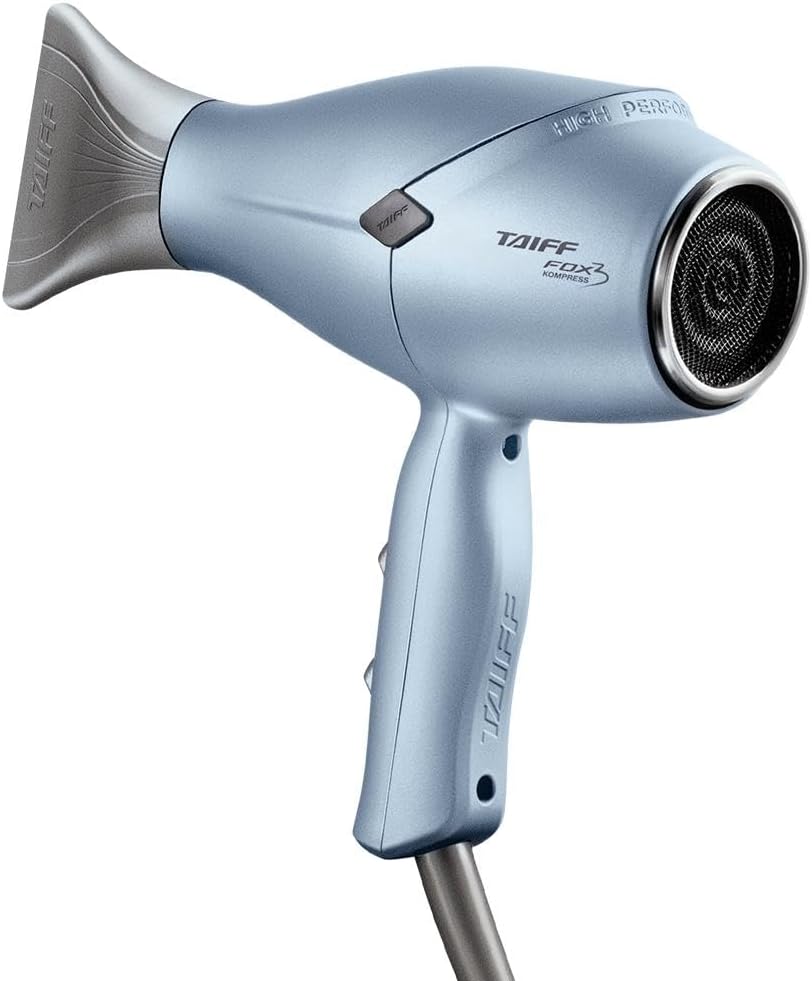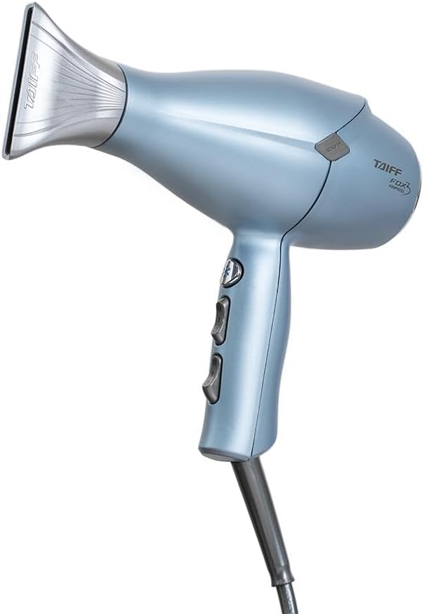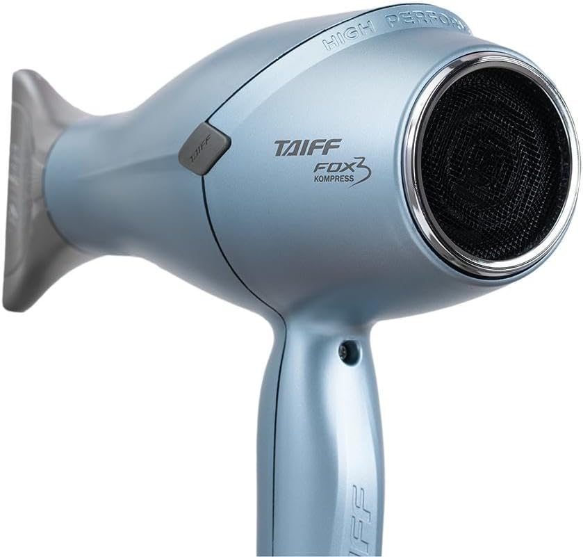 Secador Taiff Fox 3 Kompress Blue 220v, Compacto, Leve, Ergonomico, com íons negativos que proporciona o alinhamento das cutículas deixando os fios com brilho e maciez