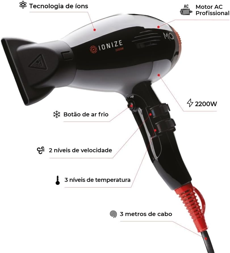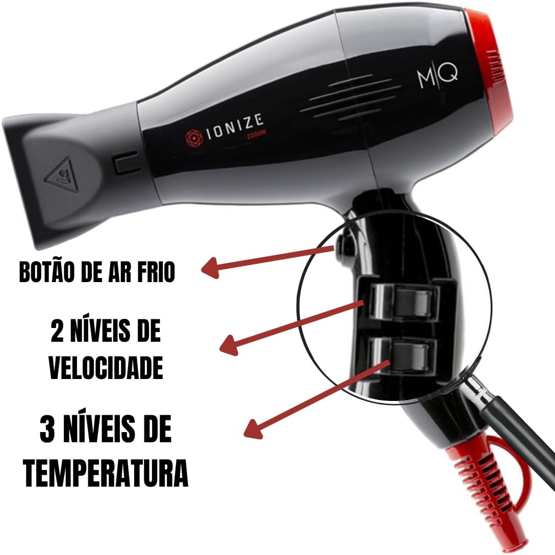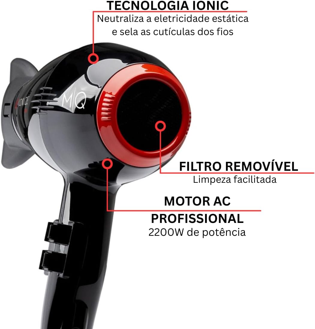 O Secador MQ Ionize 2200W é a escolha perfeita para quem busca resultado de salão em casa ou no trabalho profissional. Com motor AC profissional e emissão de íons negativos, ele proporciona secagem ultrarrápida, redução de frizz e brilho intenso nos cabelos.