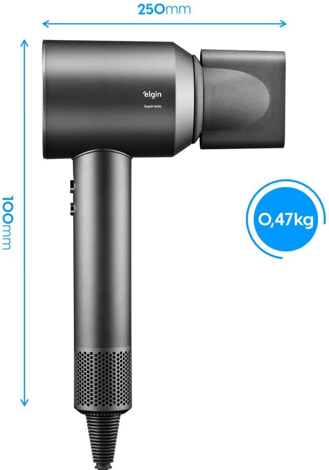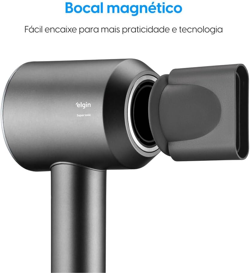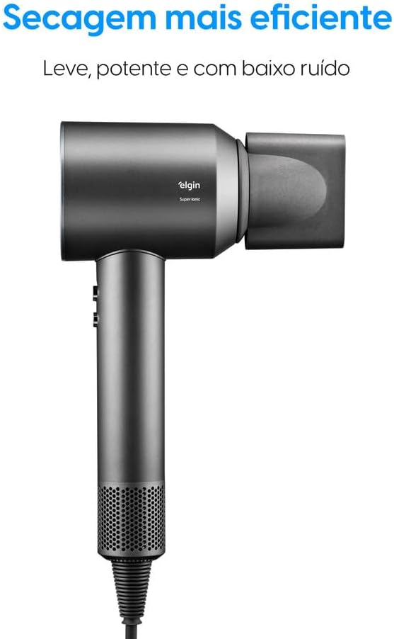 O Secador de Cabelo Super Ionic da Elgin é a escolha perfeita para quem busca tecnologia, eficiência e conforto na secagem e finalização dos cabelos. Equipado com um potente motor BLDC (Brushless Direct Current), oferece alta performance com baixo consumo de energia, além de ser leve e silencioso para um uso mais confortável. Com tensão 110V e 1.700W de potência, proporciona uma secagem rápida e eficiente. Possui 3 velocidades e 3 temperaturas, que garantem ajustes precisos para diferentes tipos de cabelo e finalizações, além do jato de ar frio, que ajuda a fixar penteados para um acabamento profissional. Seu bocal magnético de fácil encaixe traz mais praticidade e permite ajustes rápidos e maior controle no direcionamento do fluxo de ar. Também conta com sensor inteligente de temperatura que estabiliza o calor, evita o superaquecimento e protege a saúde dos fios. Com design moderno e ergonômico, o Super Ionic é um secador completo para quem valoriza praticidade e alto desempenho no dia a dia.