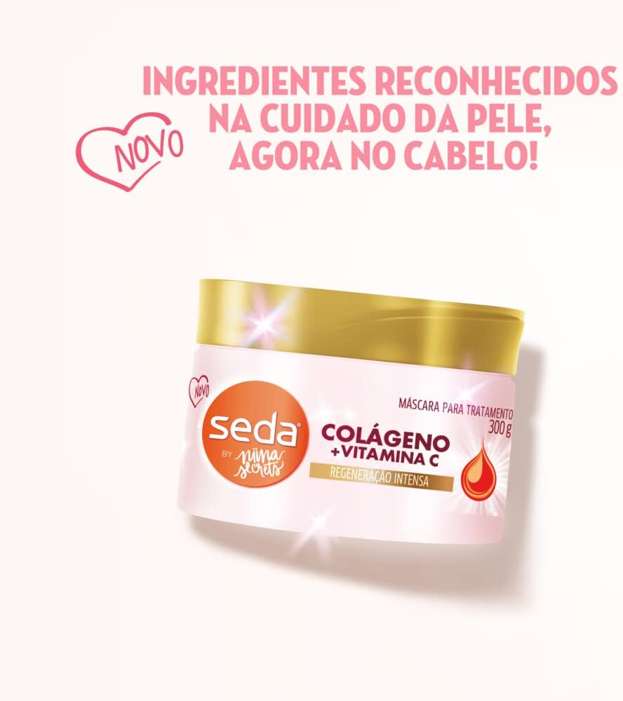 Quem imaginou que usar os ingredientes reconhecidos no cuidado com a pele no cabelo seria tão incrível? Seda, em parceria com a influenciadora Niina Secrets, lançou a combinação dos sonhos! A nova Máscara de Tratamento Seda By Niina Secrets Colágeno + Vitamina C combina dois dos ingredientes mais famosos de skincare que ajuda na regeneração intensa de danos para mais força e luminosidade*! Quer saber mais sobre os ingredientes? O colágeno é conhecido por ajudar a proporcionar firmeza, auxiliando na regeneração das fibras capilares enfraquecidas. Por seu lado, a vitamina C é um antioxidante, essencial para a produção de colágeno e que atua como potenciador da luminosidade dos fios. A Máscara de Tratamento Seda By Niina Secrets Colágeno + Vitamina C é ideal para o cabelo que precisa regeneração intensa dos cabelos danificados, deixando os fios suaves, fortes e com brilho, sem pesar. Dúvidas de como usar? É super simples e fácil! Passo a passo: com os fios ainda úmidos, aplique por todo o cabelo até as pontas (evitando a raiz). Passando mecha a mecha, de cima para baixo. Deixe agir por 3 minutos e depois enxágue até remover todo o creme dos fios. Pronto! Quer resultados ainda mais incríveis? Então use a linha toda de produtos Seda Colágeno + Vitamina C By Niina Secrets. Fazemos produtos para cabelos que gostam de experimentar, explorar, sonhar e descobrir. Vamos ser sinceras: nos dias de hoje temos mais possibilidades do que nunca. Cada segundo é uma oportunidade de viver ao máximo. *Regeneração da suavidade, brilho e força devido à quebra com o uso da linha completa.