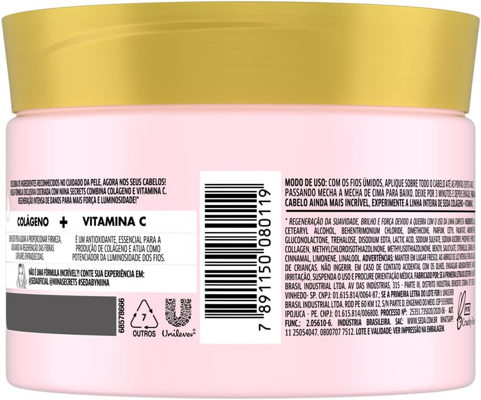 A Máscara de Tratamento Seda By Niina Secrets Colágeno + Vitamina C possui fórmula que ajuda na regeneração intensa do cabelo