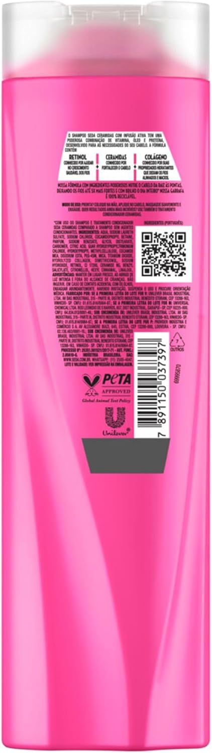 Fórmula contém Retinol, conhecido por ajudar no crescimento dos fios, Ceramidas, conhecido por fortalecer o cabelo, e Colágeno, por suas propriedades hidratantes que deixam os fios alinhados e macios