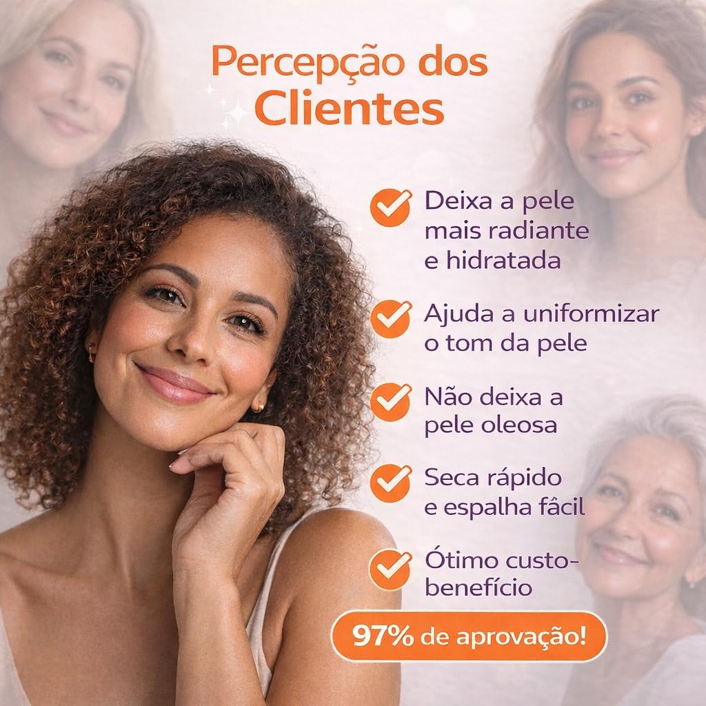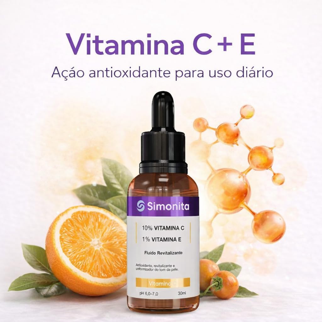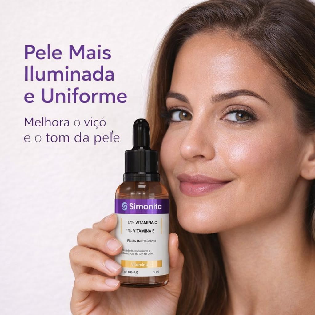 PELE MAIS ILUMINADA E UNIFORME: Combinação de vitamina C 10% com vitamina E 1% que auxilia na uniformização do tom; melhora a aparência opaca; uso contínuo favorece pele mais radiante