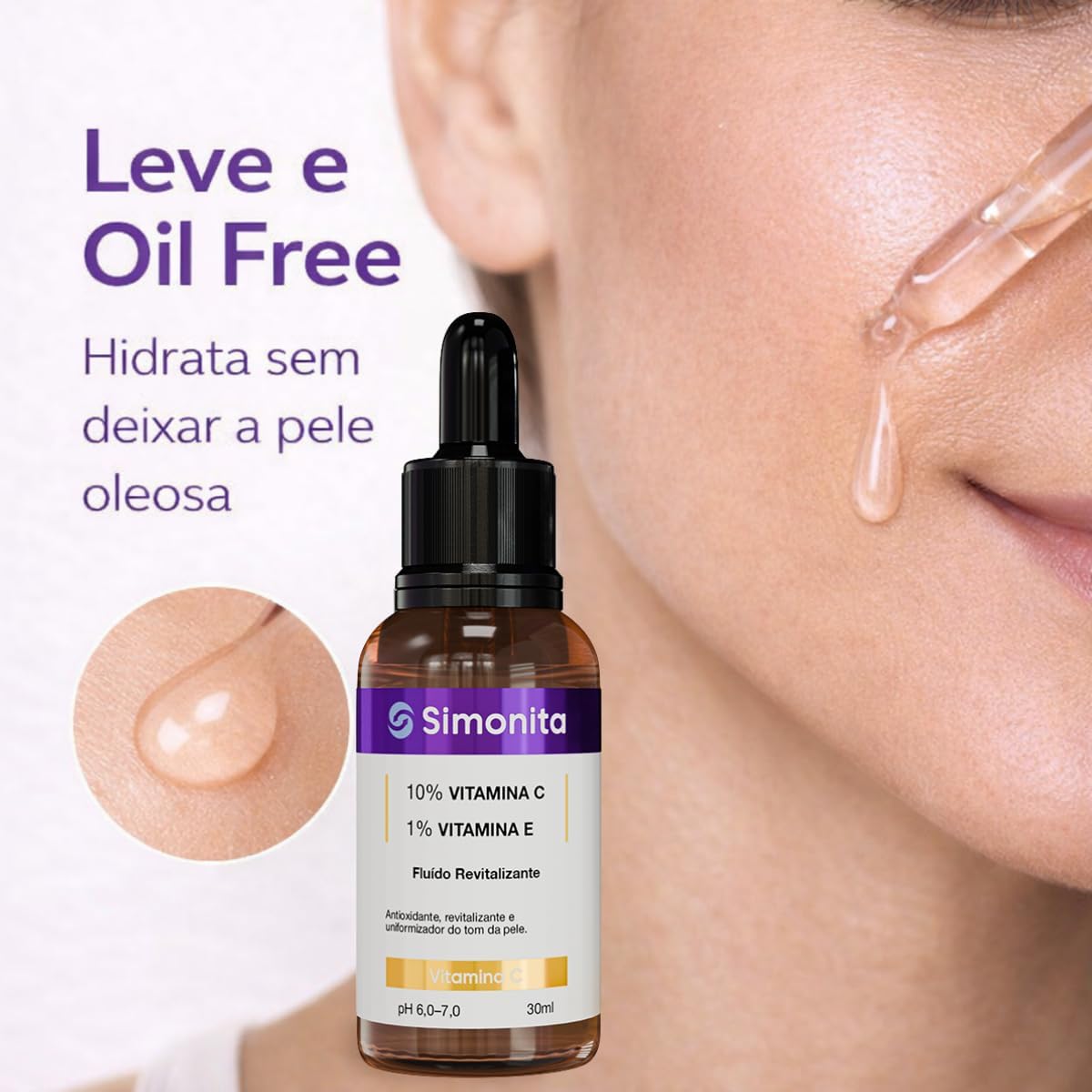 HIDRATA SEM OLEOSIDADE: Textura leve oil free de rápida absorção; não pesa na pele; ideal para rotina diária inclusive peles mistas e oleosas