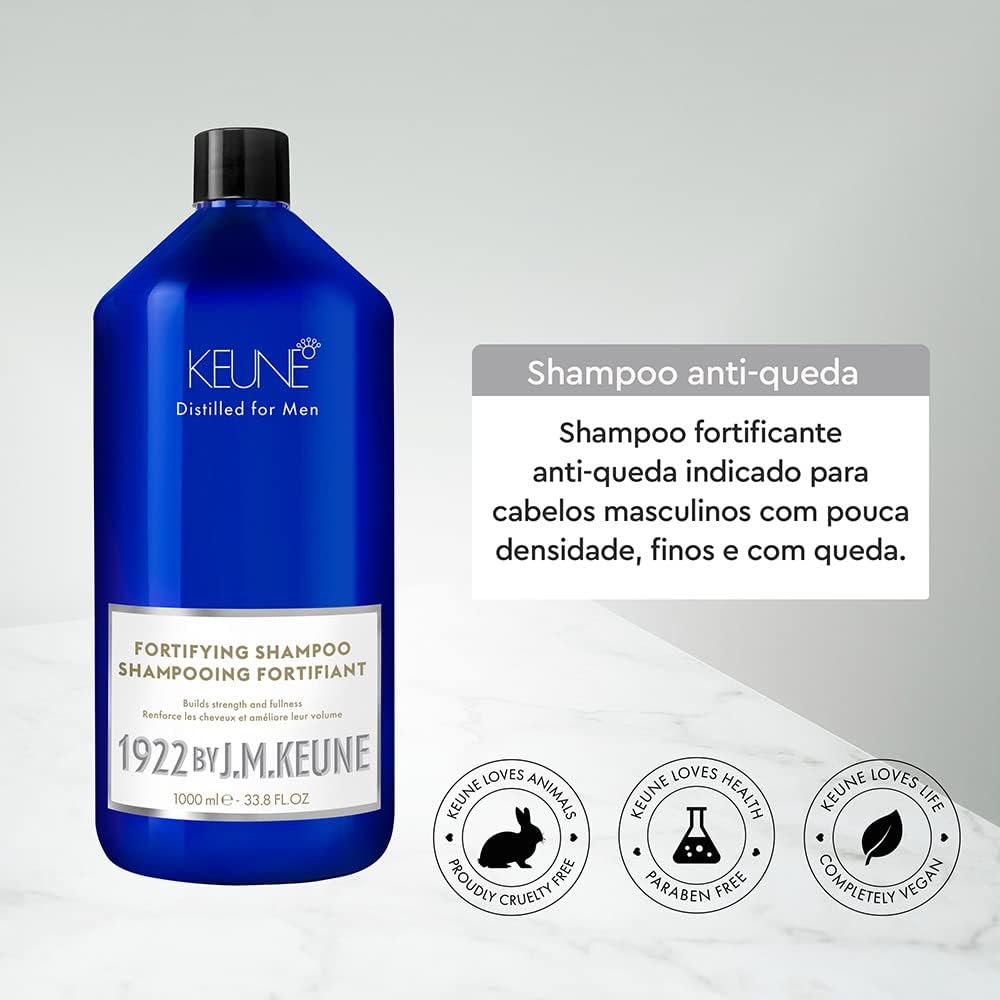 Indicado para o cabelo masculino fino, com pouca densidade e muita queda, o 1922 Fortifying Shampoo ajuda a evitar queda e retarda pro excesso de calvície. Sua fórmula dilata os poros do couro cabeludo (ação refrescante) para a entrada da loção, fortifica e revitaliza os fios.