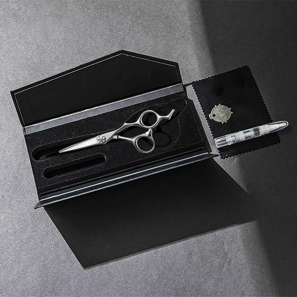Tesoura de corte de cabelo profissional de ampla aplicação】Este é um dos penteados mais familiares ou profissionais do mercado, não importa o estilo de cabelo que você tenha. Funciona bem para cabeleireiros, cabeleireiros ou pessoas que aparam seus cabelos em casa. Confiamos totalmente na qualidade, durabilidade e utilidade de nossas tesouras de cabeleireiro, é por isso que oferecemos garantia de 12 meses e garantia de reembolso de 30 dias por qualquer motivo e atendimento ao cliente amigável!