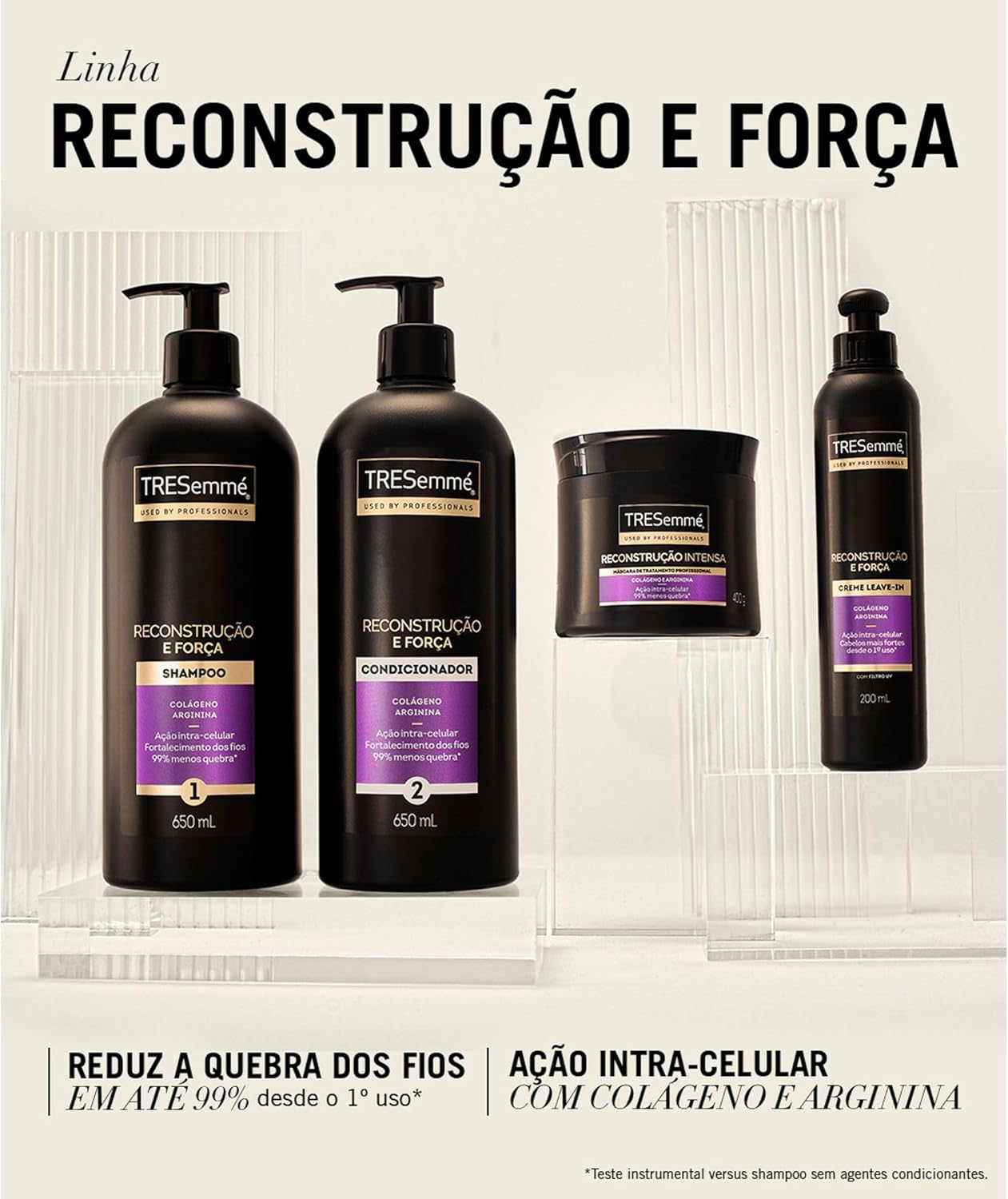 Redução de quebra desde o primeiro uso: com o uso do Shampoo e Condicionador TRESemmé Reconstrução e Força, seus cabelos estarão mais resistentes, com uma redução de quebra de até 99%
