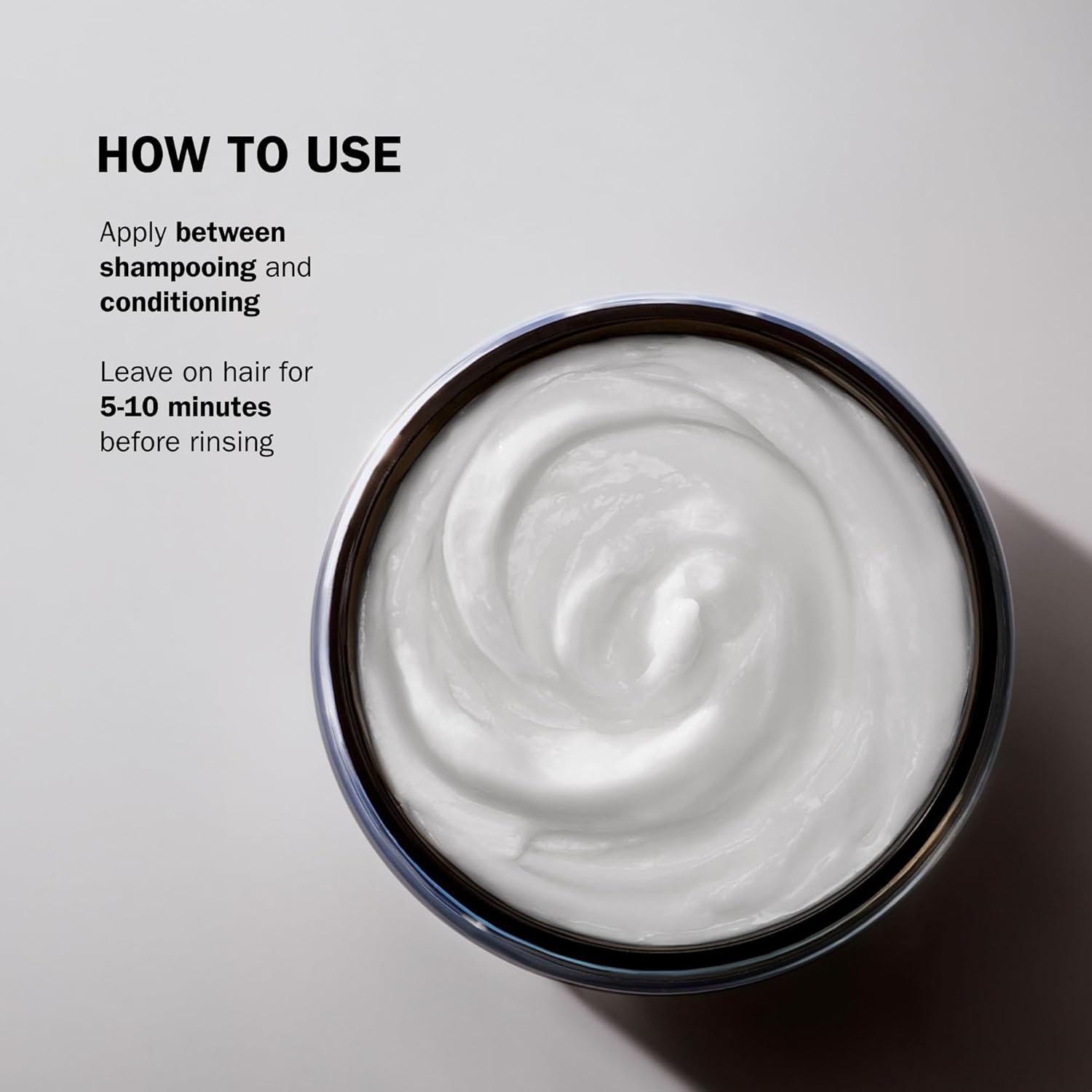 Aplique a máscara nos cabelos úmidos, massageie e deixe agir de 5-10 minutos. Em seguida, enxague.