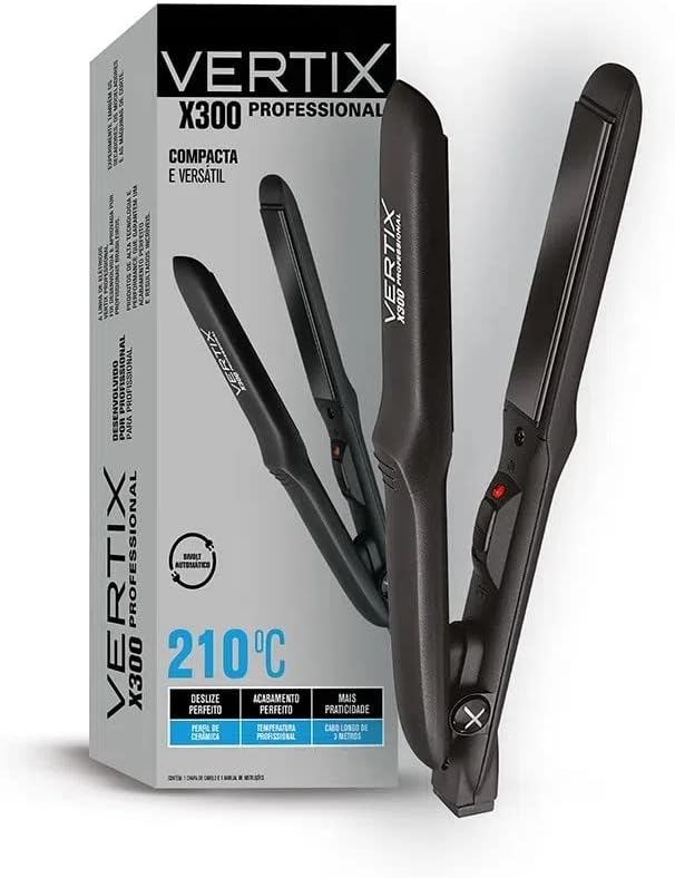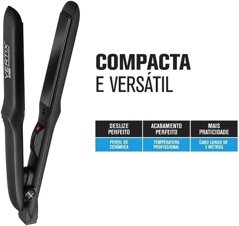Compacta e versátil, perfil de cerâmica, deslize perfeito, Ideal para franja e raiz, Temperatura profissional 210º