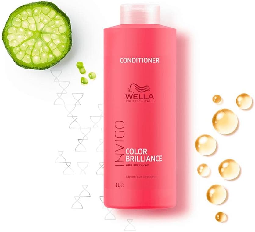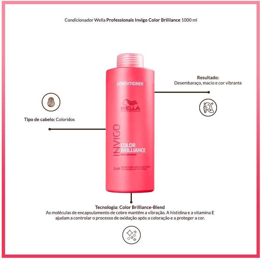 Condicionador para Cor Vibrante, tratamento condicionante. Wella Professionals Invigo Color Brilliance Condicionador para melhorar a superfície do cabelo e realçar a vitalidade da coloração.Caviar de Limão: rico em poderosos antioxidantes e vitaminas essenciais.Histidina e Vitamina E: combatem o desbotamento da coloração.Modo de usar:Espalhe Wella Professionals Invigo Color Brilliance Condicionador no cabelo limpo e úmido no comprimento e pontas, massageie e deixe agir 5 minutos. Enxague