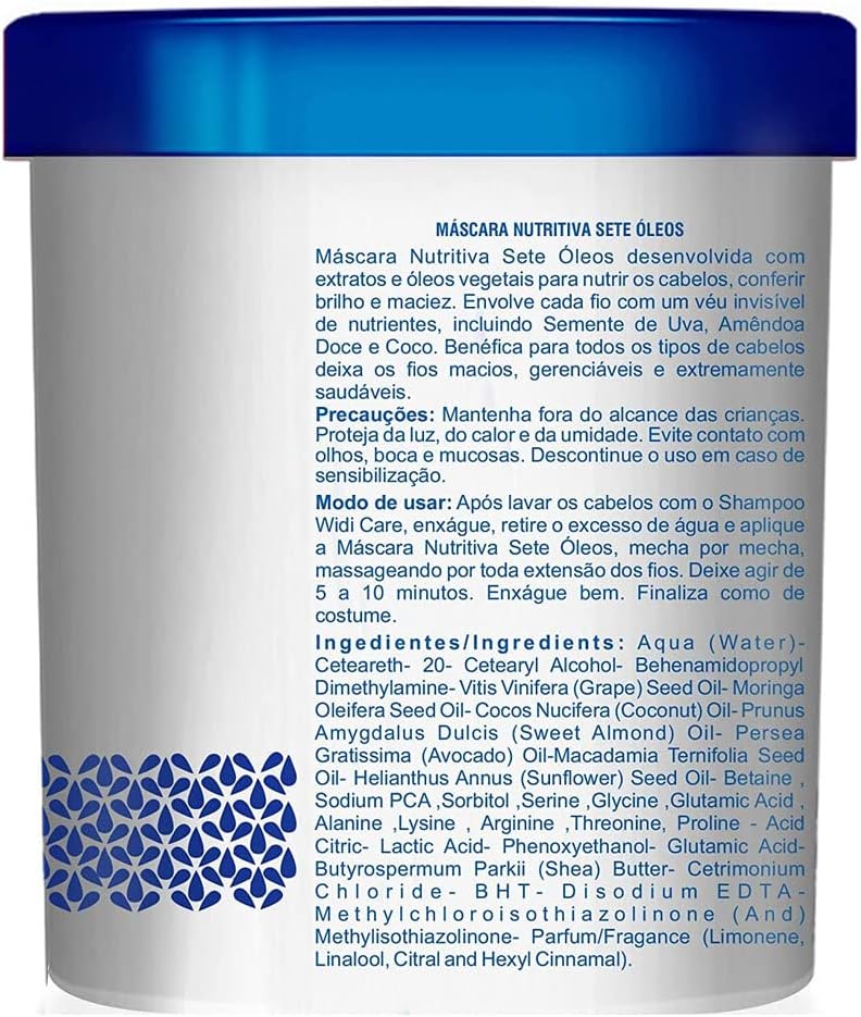Seja o primeiro a avaliar “Widi Care Máscara de Tratamento Nutritiva Sete Óleos 1kg”